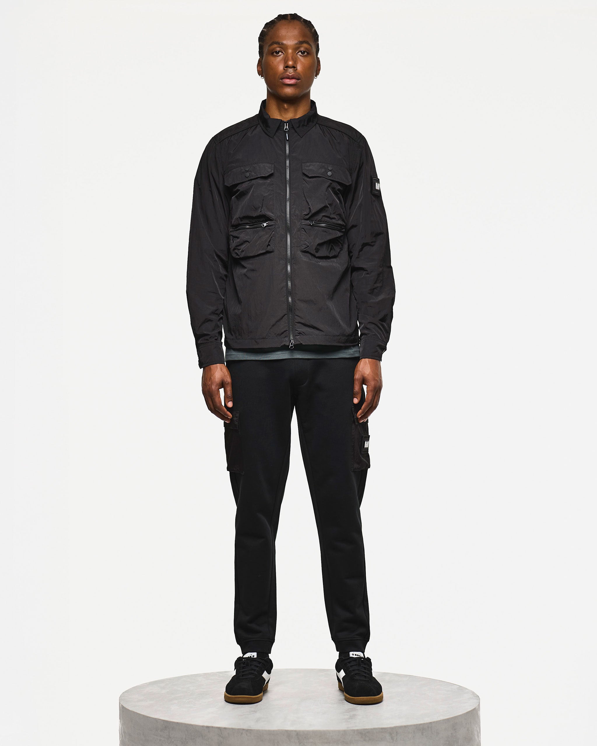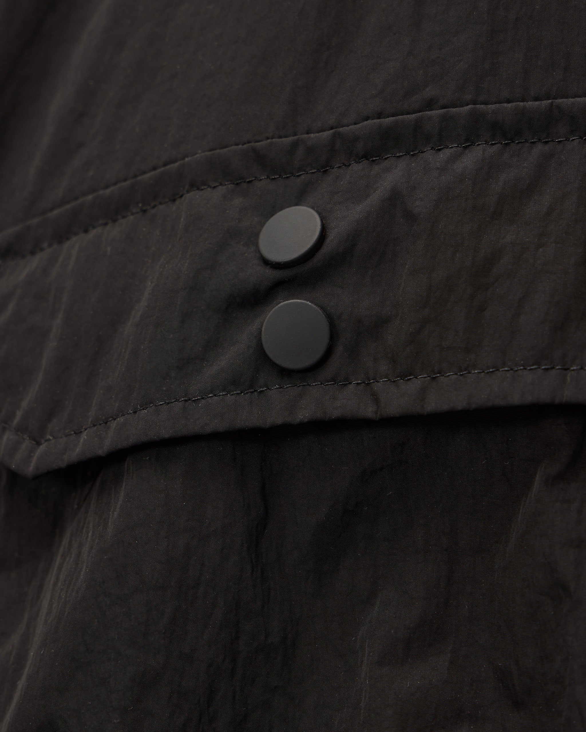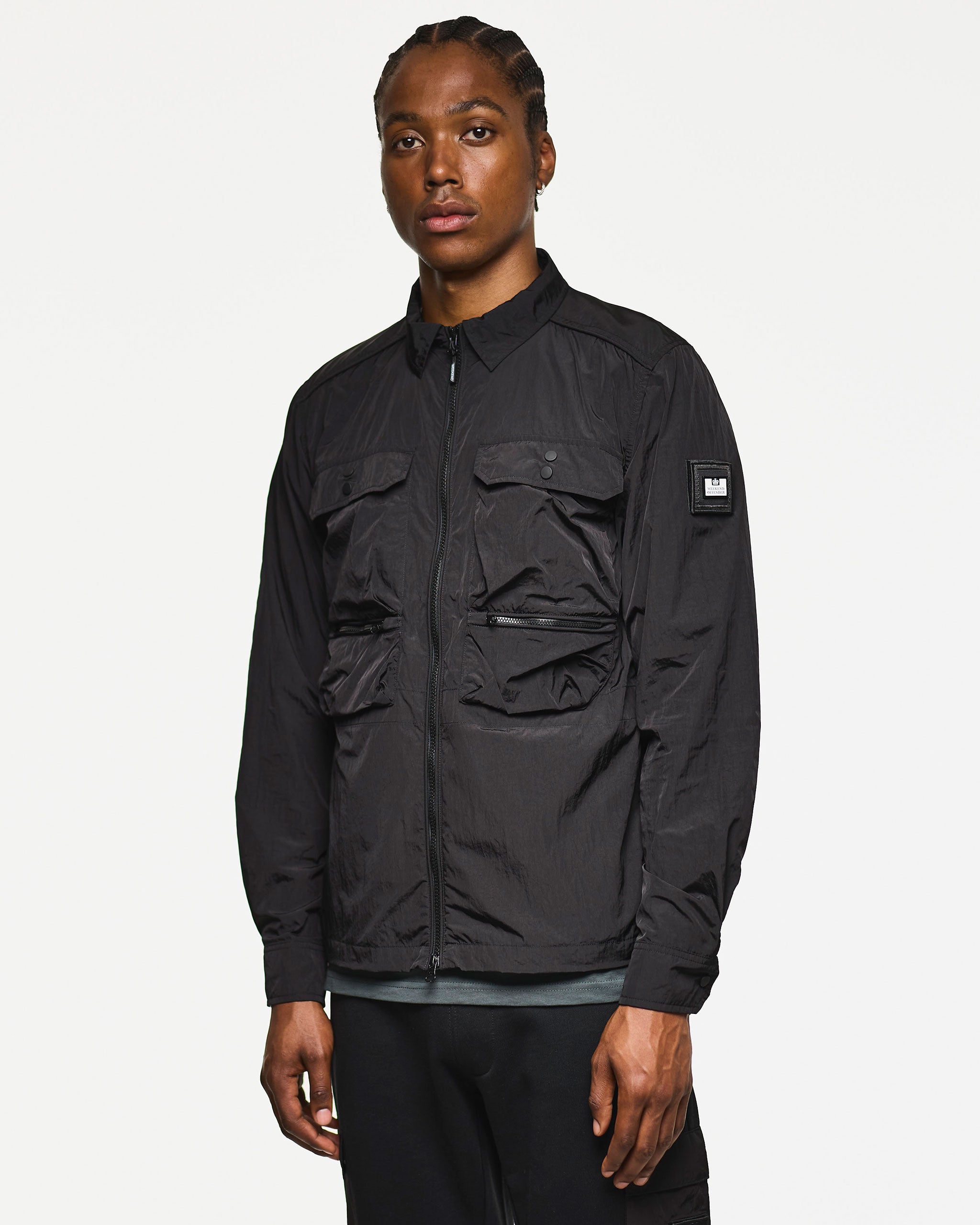 The Shields Over-Shirt is made from lightweight high density woven 100% Nylon parachute style fabric with misted lightly reflective surface. Treated with an additional DWR (Durable Water Repellent) coating.