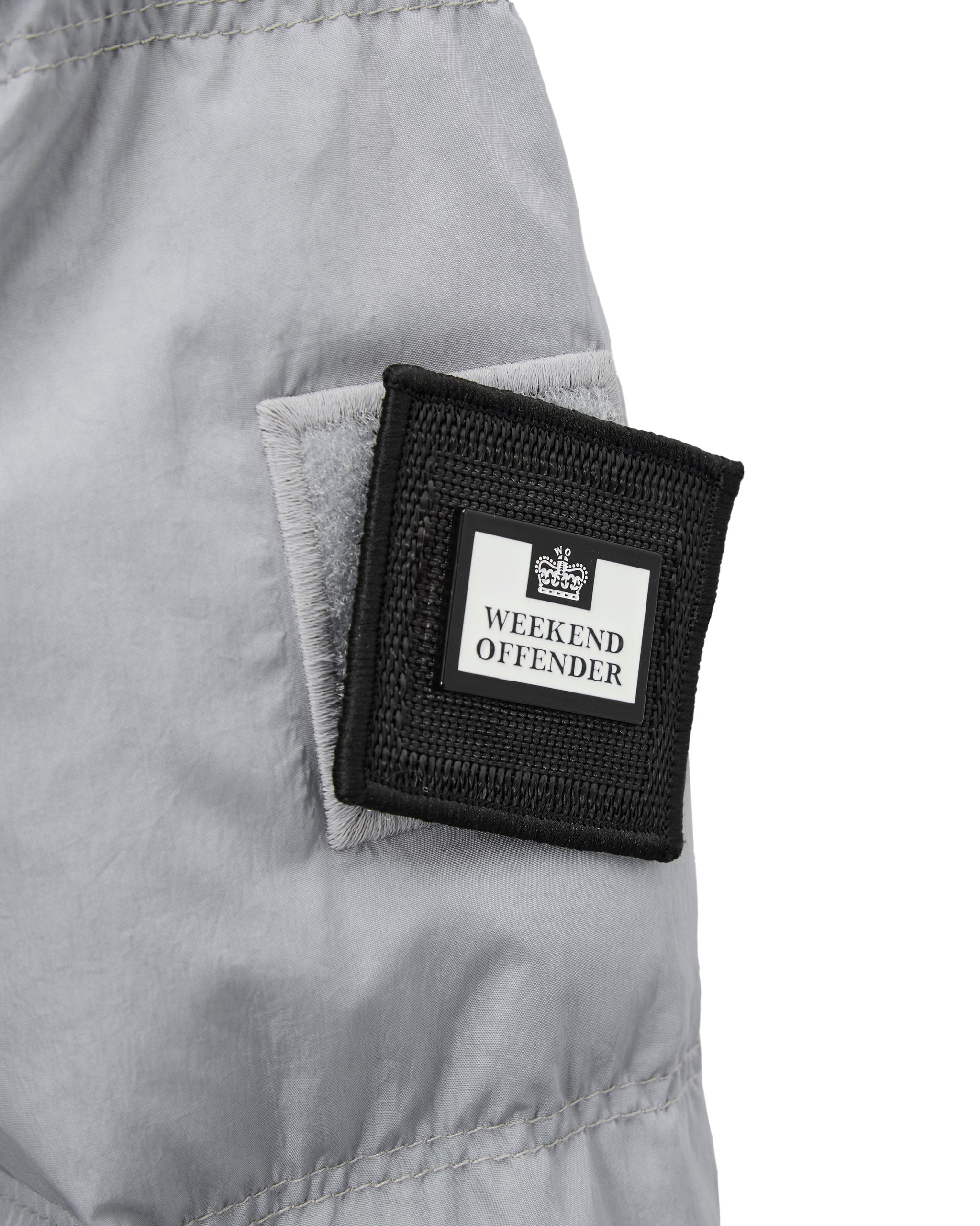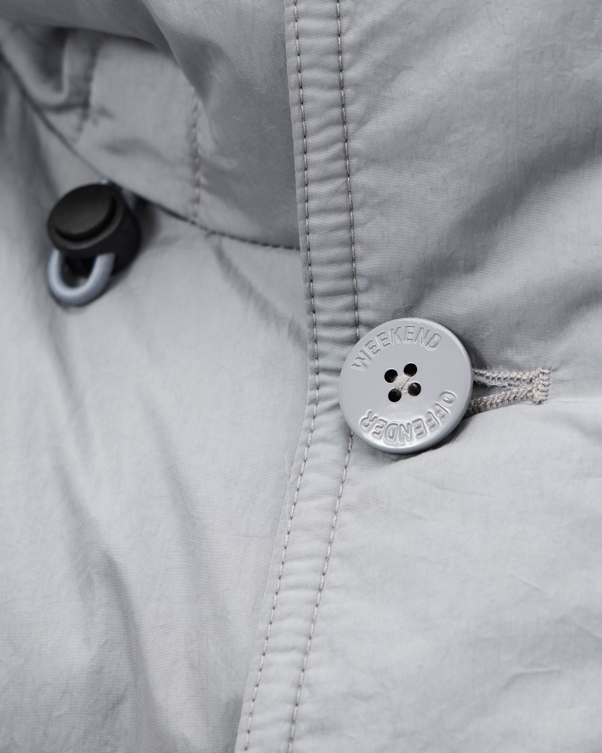 This WO staple fabric is made from lightweight high density woven 100% Nylon parachute style fabric with misted lightly reflective surface. Treated with an additional DWR (Durable Water Repellent) coating.