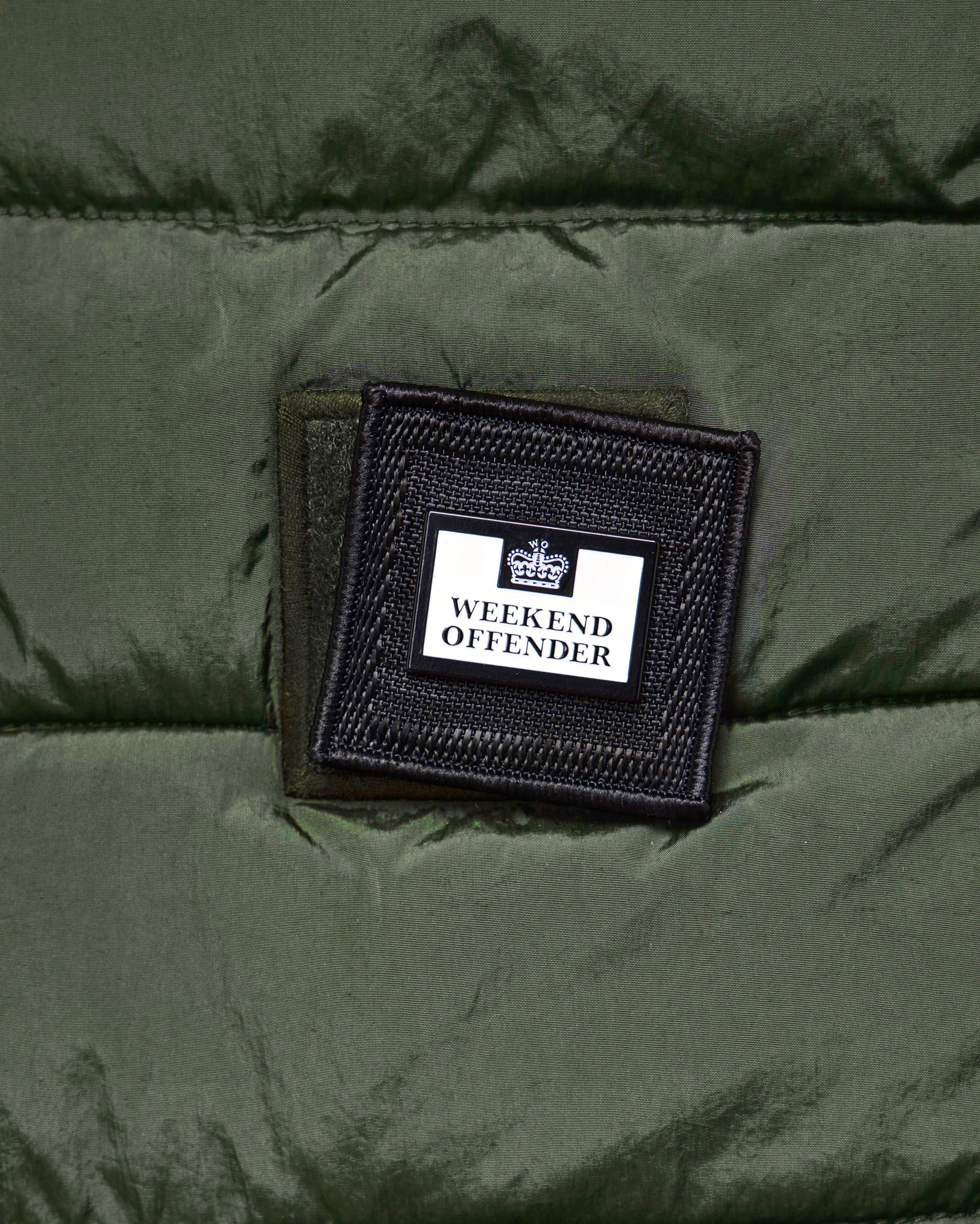 The Gacha Gilet is made from lightweight high density woven 100% Nylon parachute style fabric with misted lightly reflective surface. Treated with an additional DWR (Durable Water Repellent) coating.