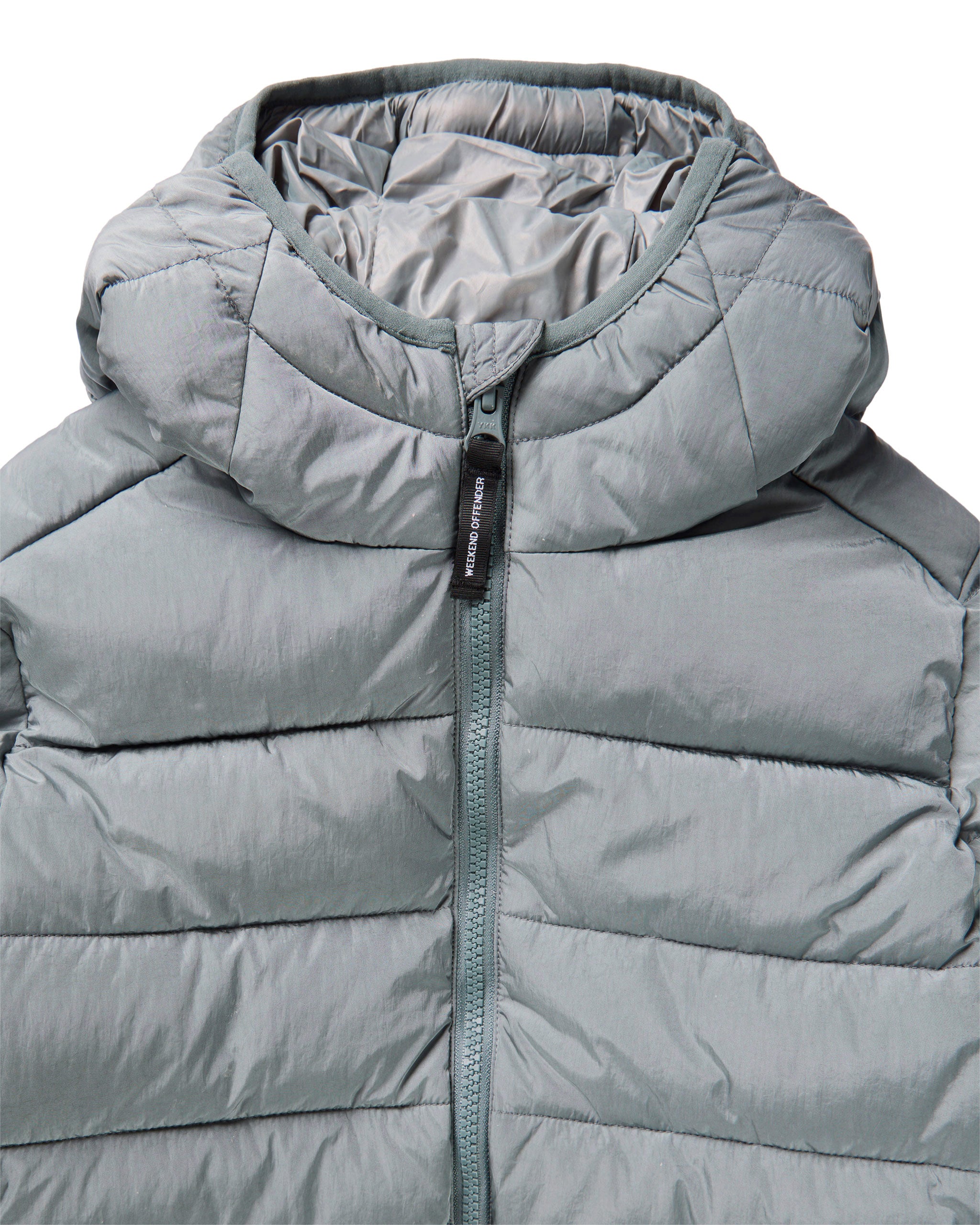 The La Guardia Puffer Jacket is made from a lightweight high density woven 100% Nylon parachute style fabric with misted lightly reflective surface.
