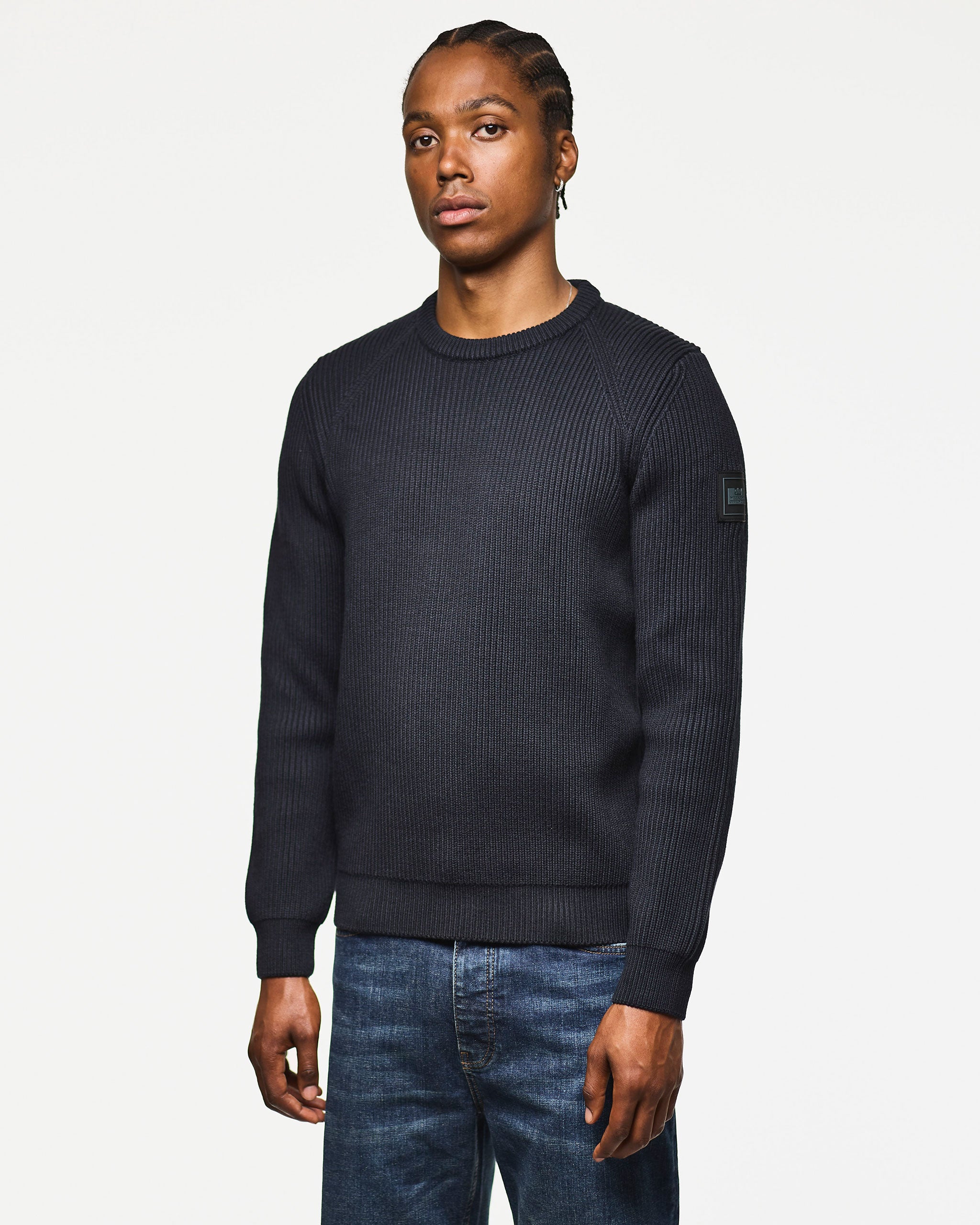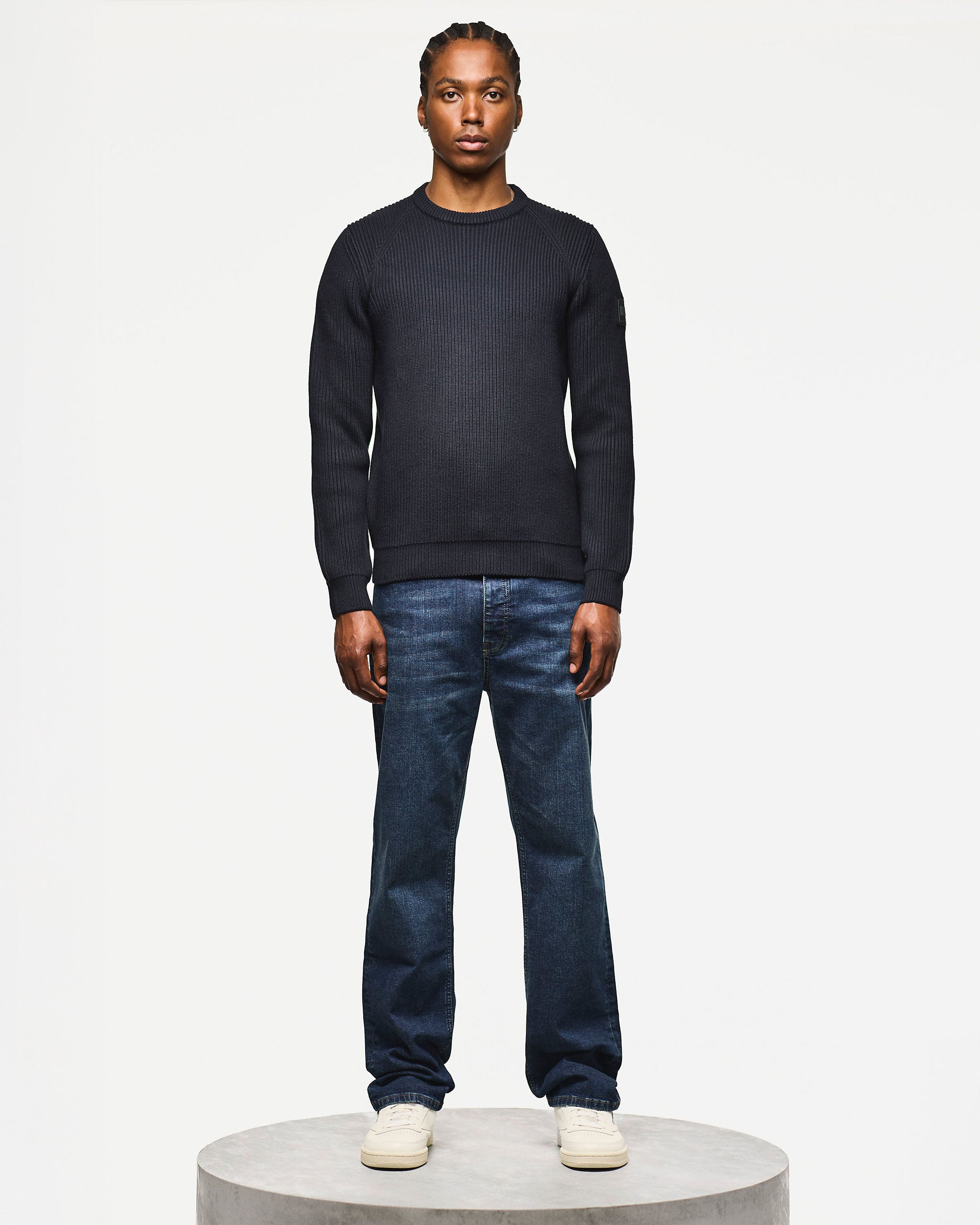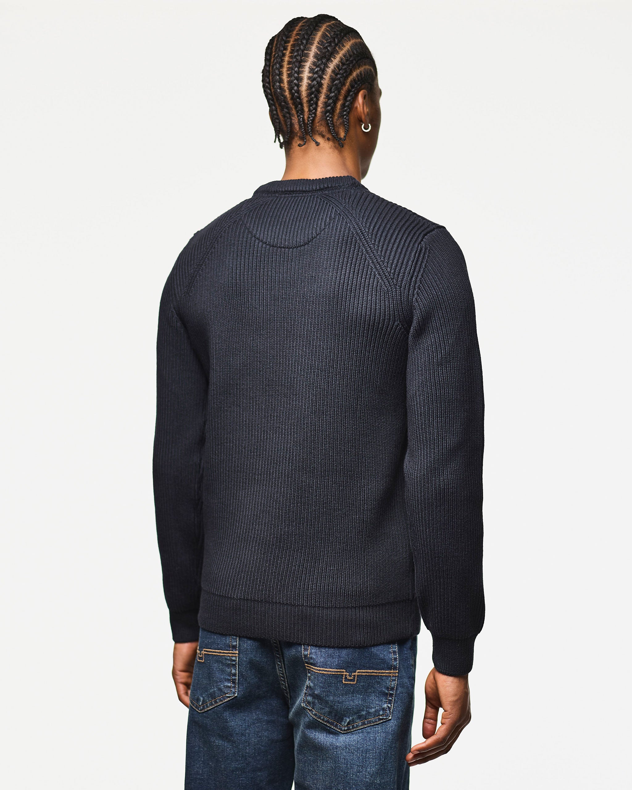 The Morello Knitted Sweater is made from a chunky 7 gauge fisherman rib in blended Cotton.