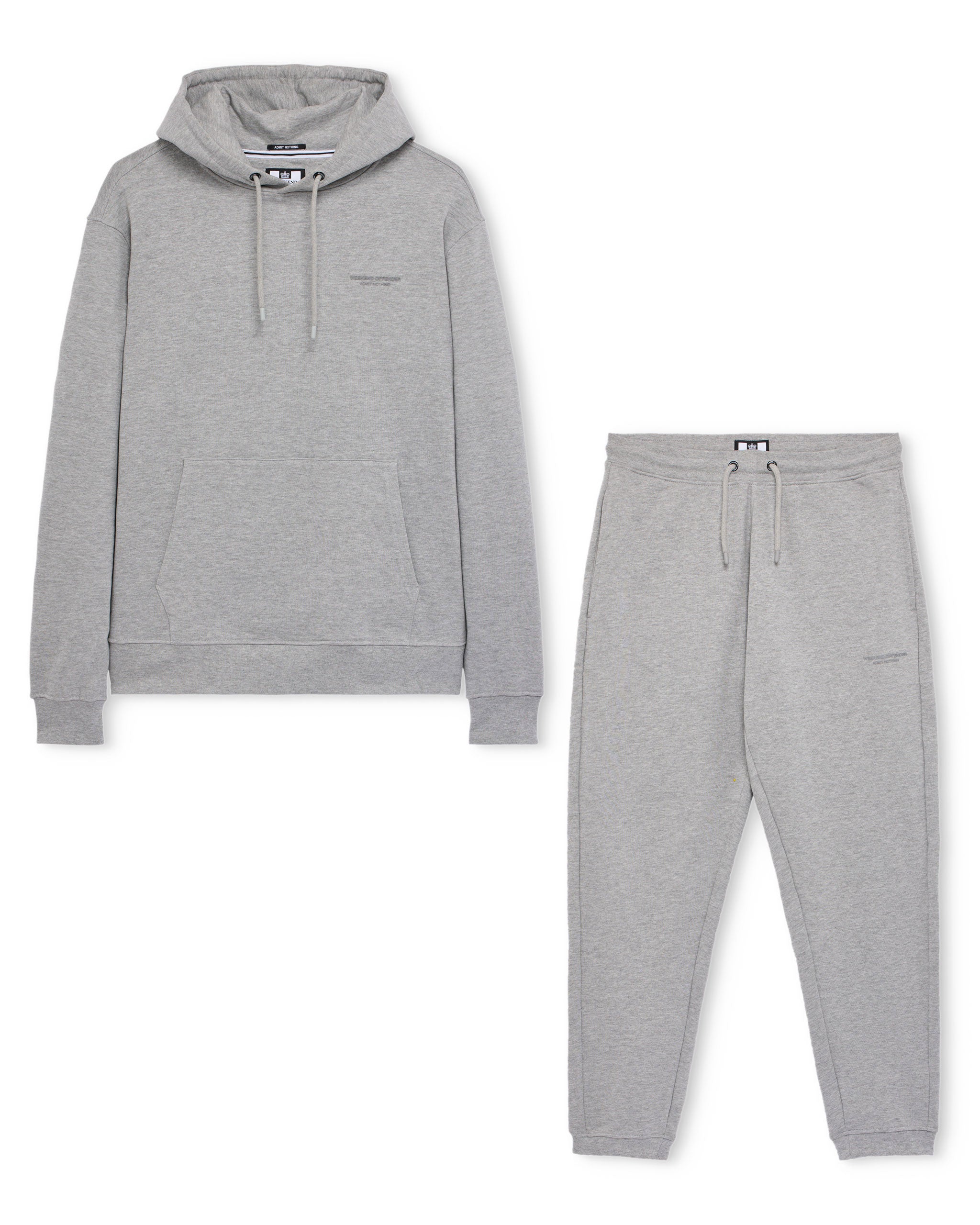 Overhead hoodie and jog pant set made from knitted 100% Cotton 370gsm brushback fleece with twisted yarn construction to create a substantial feel and minimise piling.