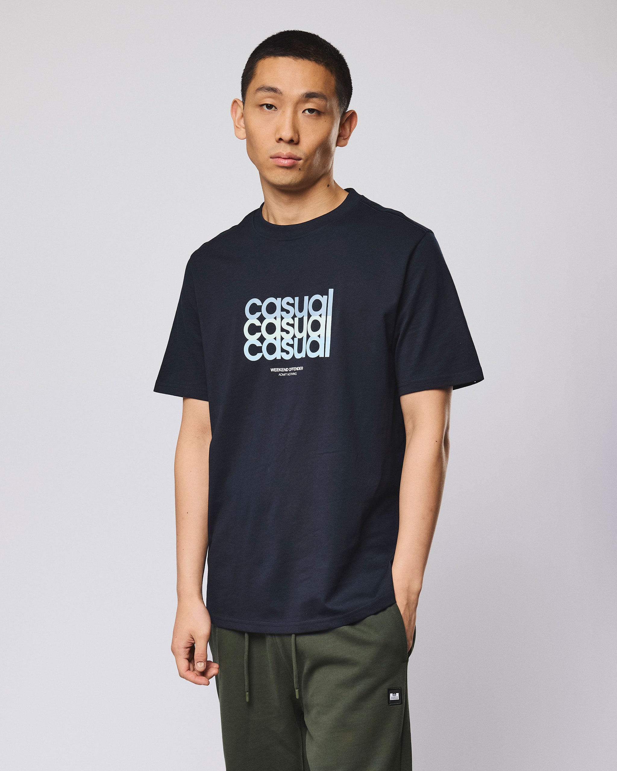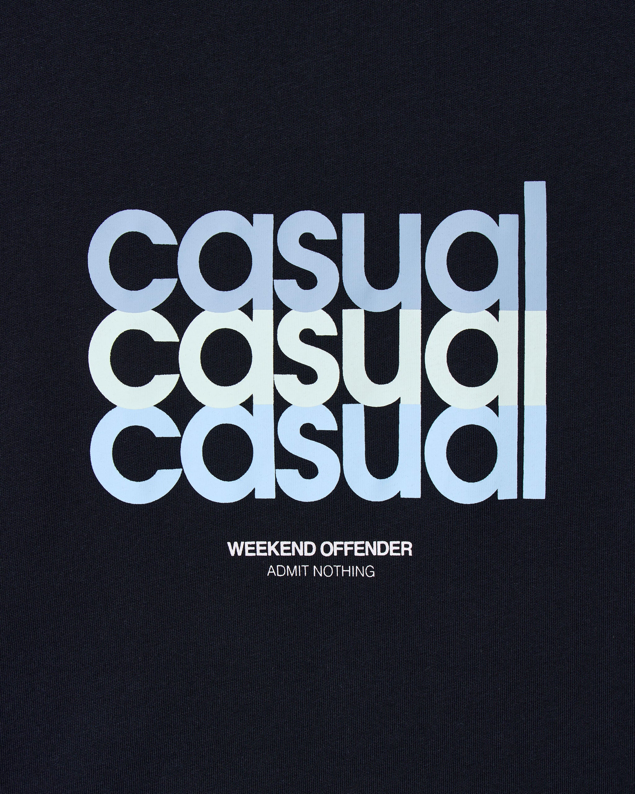 The W.O.L graphic tee features a stripped-back graphic built on repetition, rhythm, and the roots of terrace style. Bold, soft-toned type, giving a nod to the casual movement with Weekend Offender understatement.