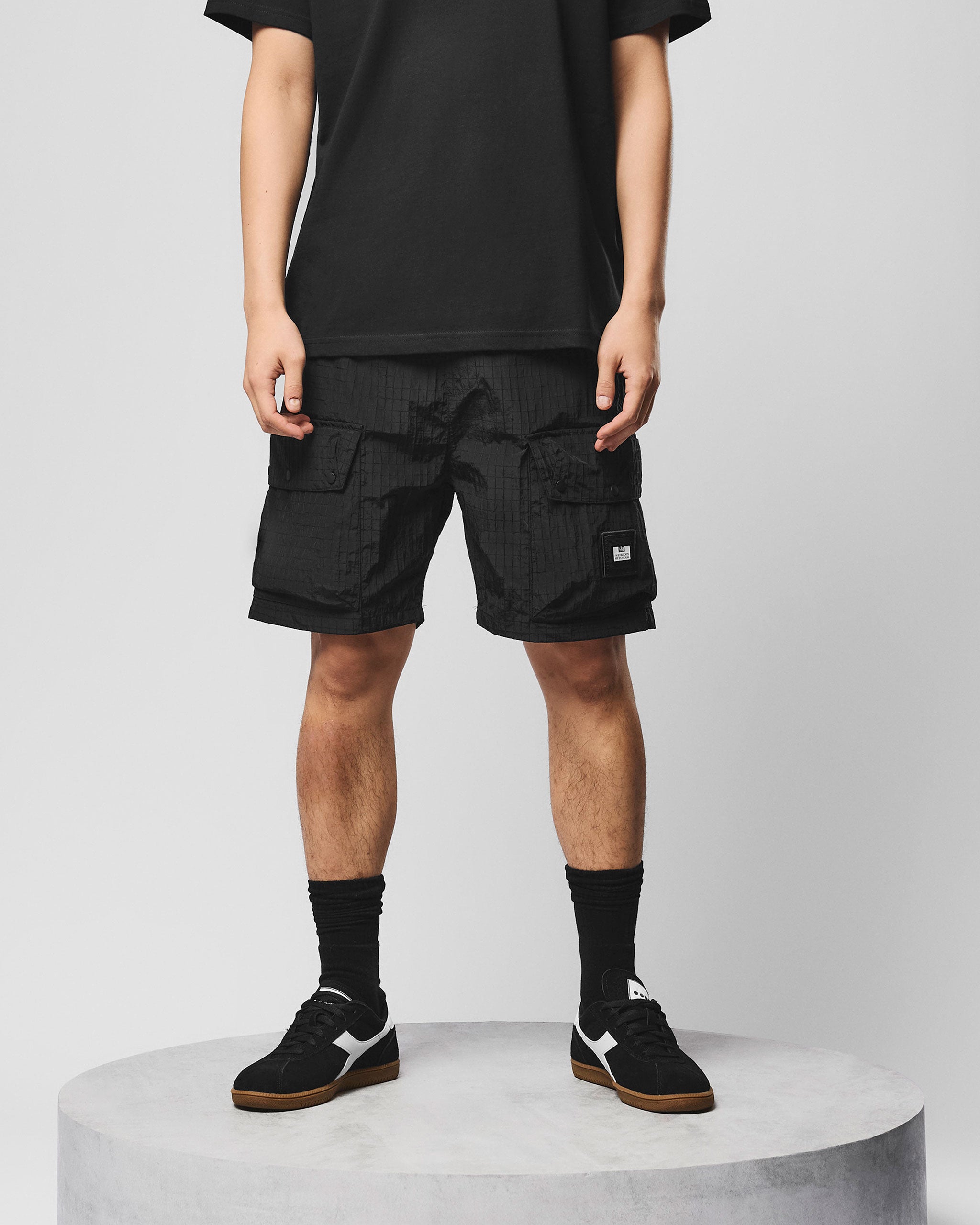 The Zemmouri Shorts are made from custom WO 100% Nylon large ripstop with 3D braided reinforcement threads for high tensile strength and textured finish.
