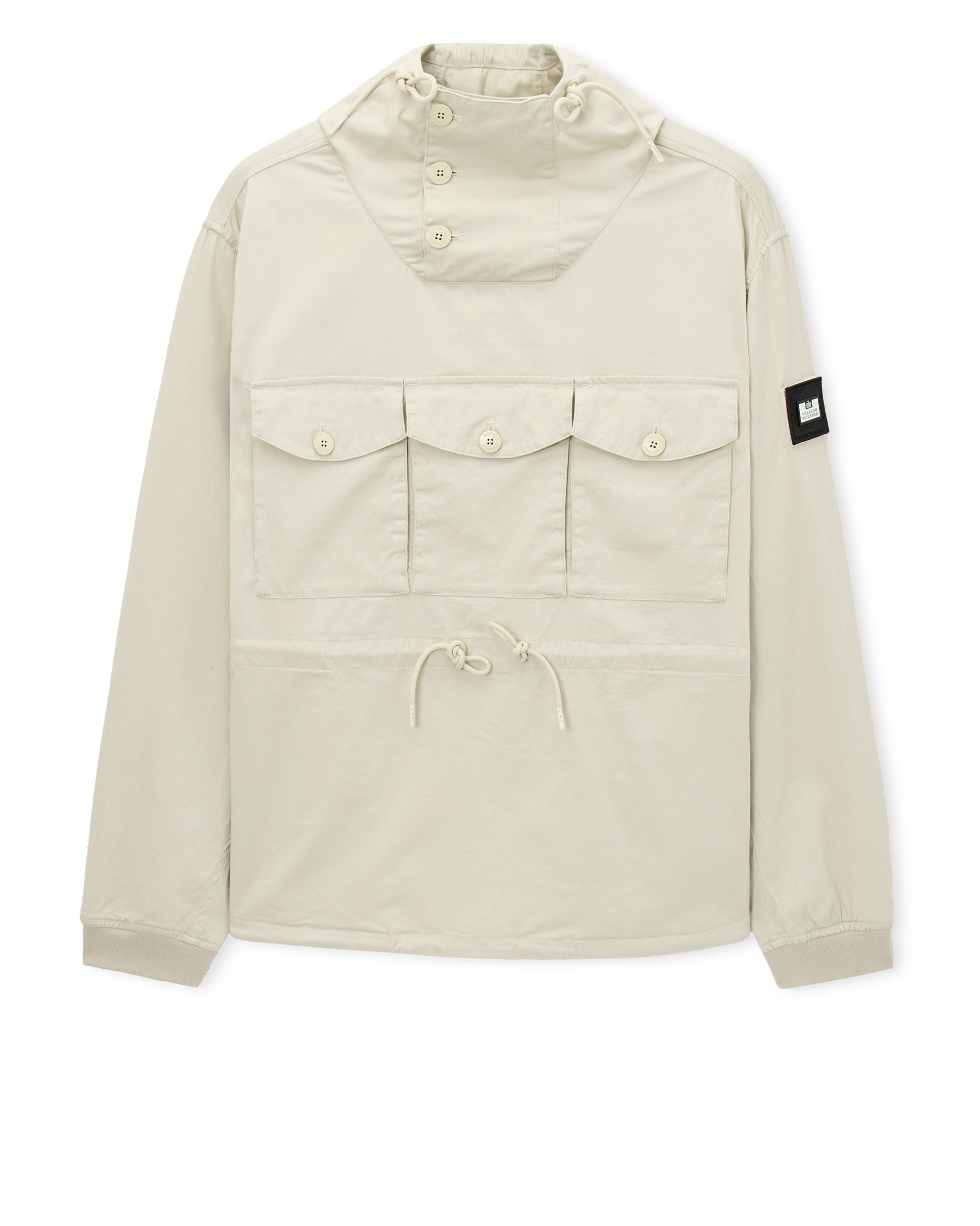 ▪ Three piece hood with placket and WO branded metal buttons