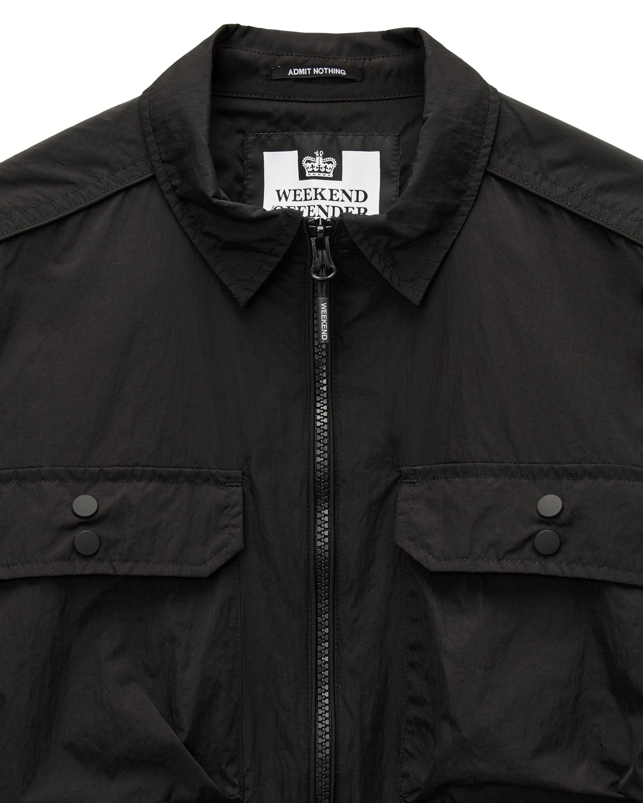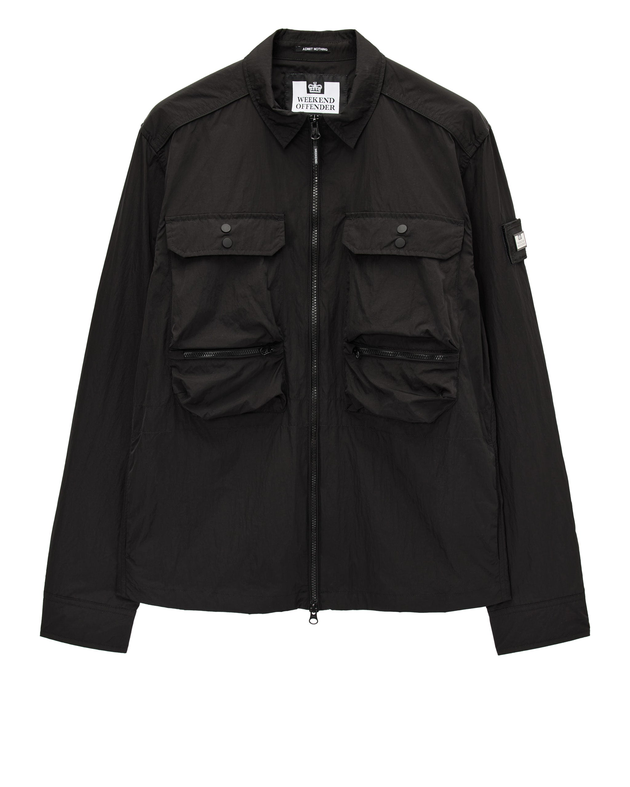 The Shields Over-Shirt is made from lightweight high density woven 100% Nylon parachute style fabric with misted lightly reflective surface. Treated with an additional DWR (Durable Water Repellent) coating.