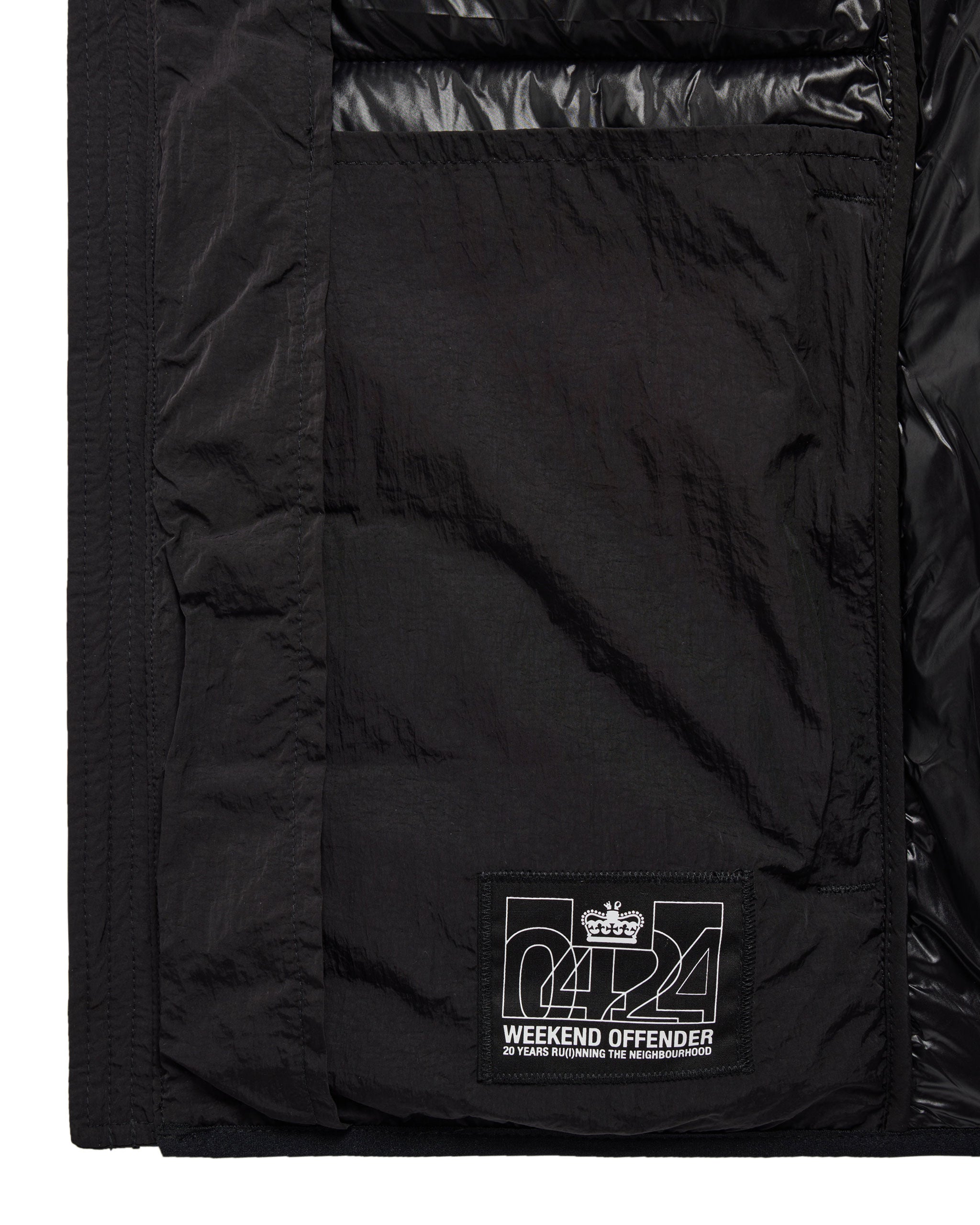 The Gacha Padded Gilet is made from lightweight high density woven 100% Nylon parachute style fabric with misted lightly reflective surface. Treated with an additional DWR (Durable Water Repellent) coating.