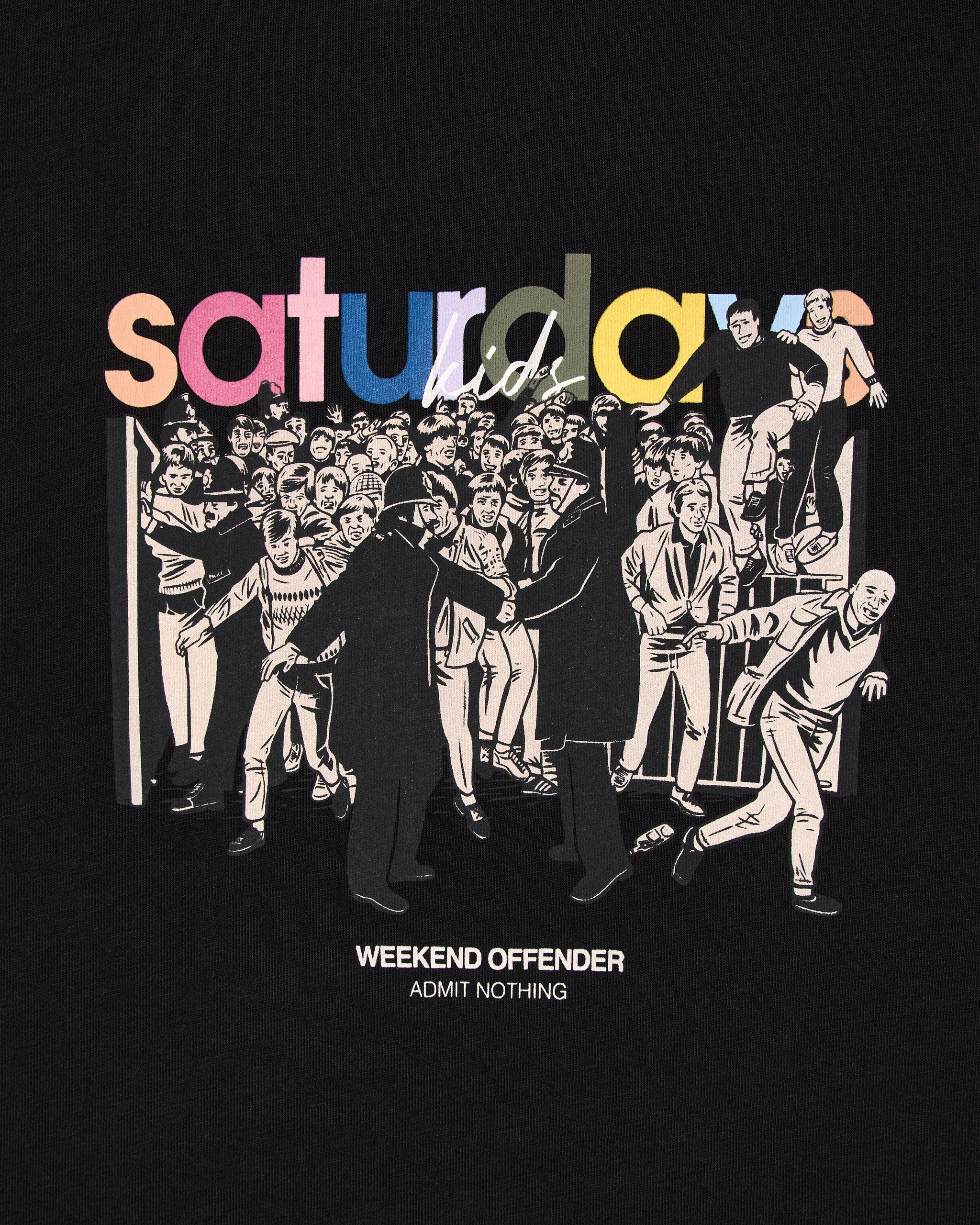 The Saturdays Kids Graphic Tee features a tribute to the golden age of British terrace culture, this graphic captures the chaos, energy, and defiance of a matchday crowd spilling through the gates. The title nods to an iconic track.