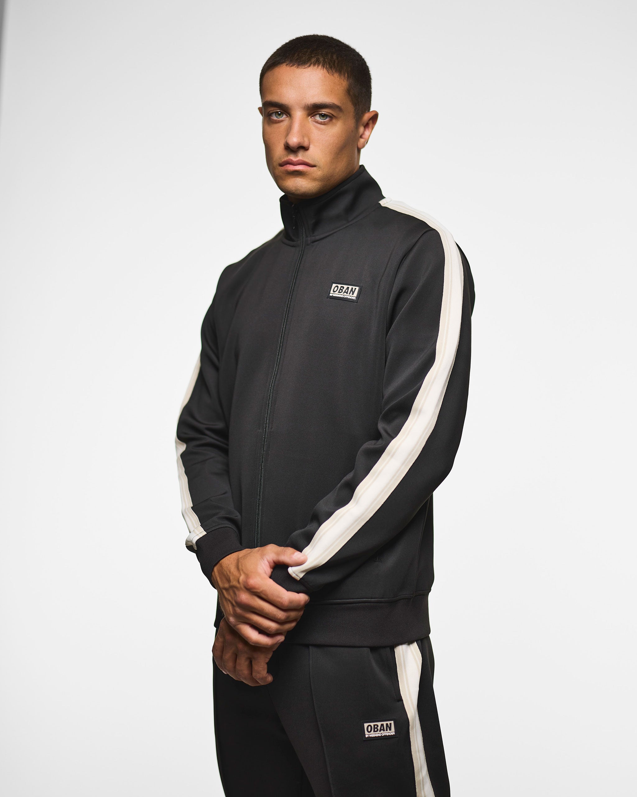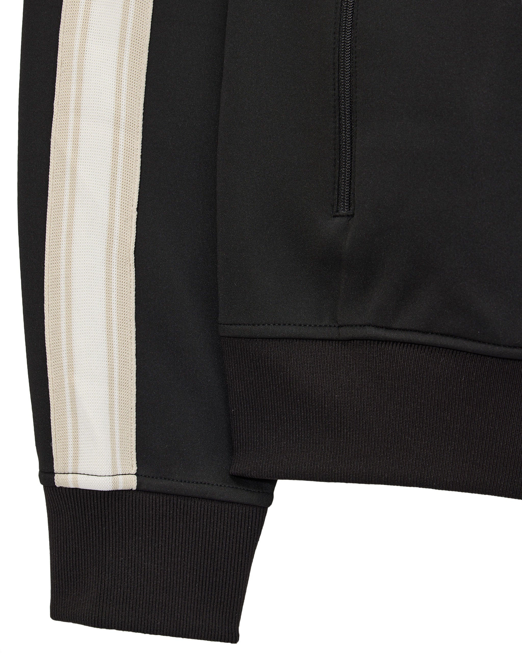 The Woodburn Tricot Track Top is made from 90% polyester 10% elastane warp knitted tricot fabric with 4-way stretch for a relaxed silhouette and classic sporting feeling.