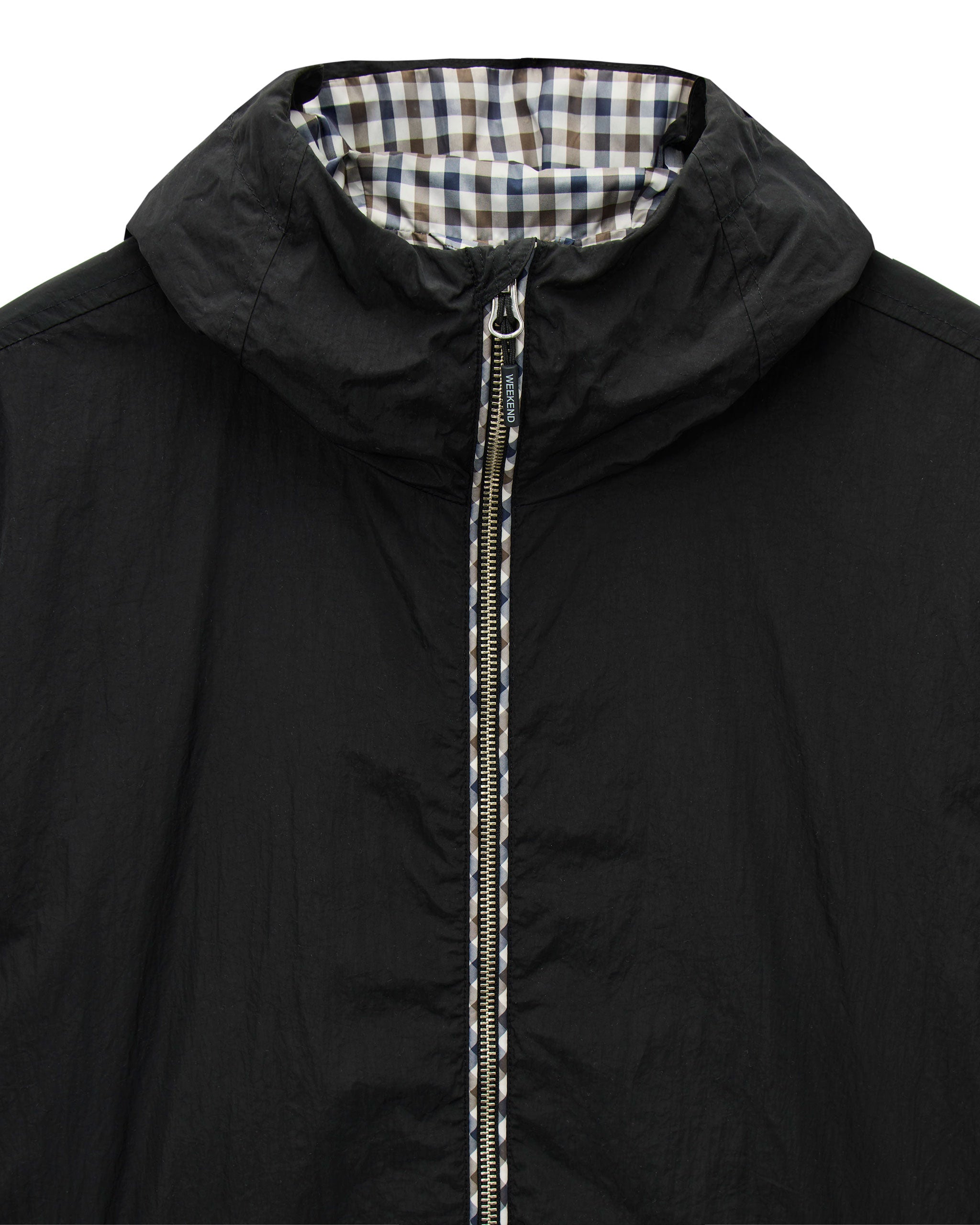 The Campania Windbreaker Jacket is available in two fabrications: Our 100% Polyester iconic signature 3 colour fine weave mid house check and our WO staple lightweight high density woven 100% Nylon parachute style fabric with misted lightly reflective surface. All treated with an additional DWR (Durable Water Repellent) coating.