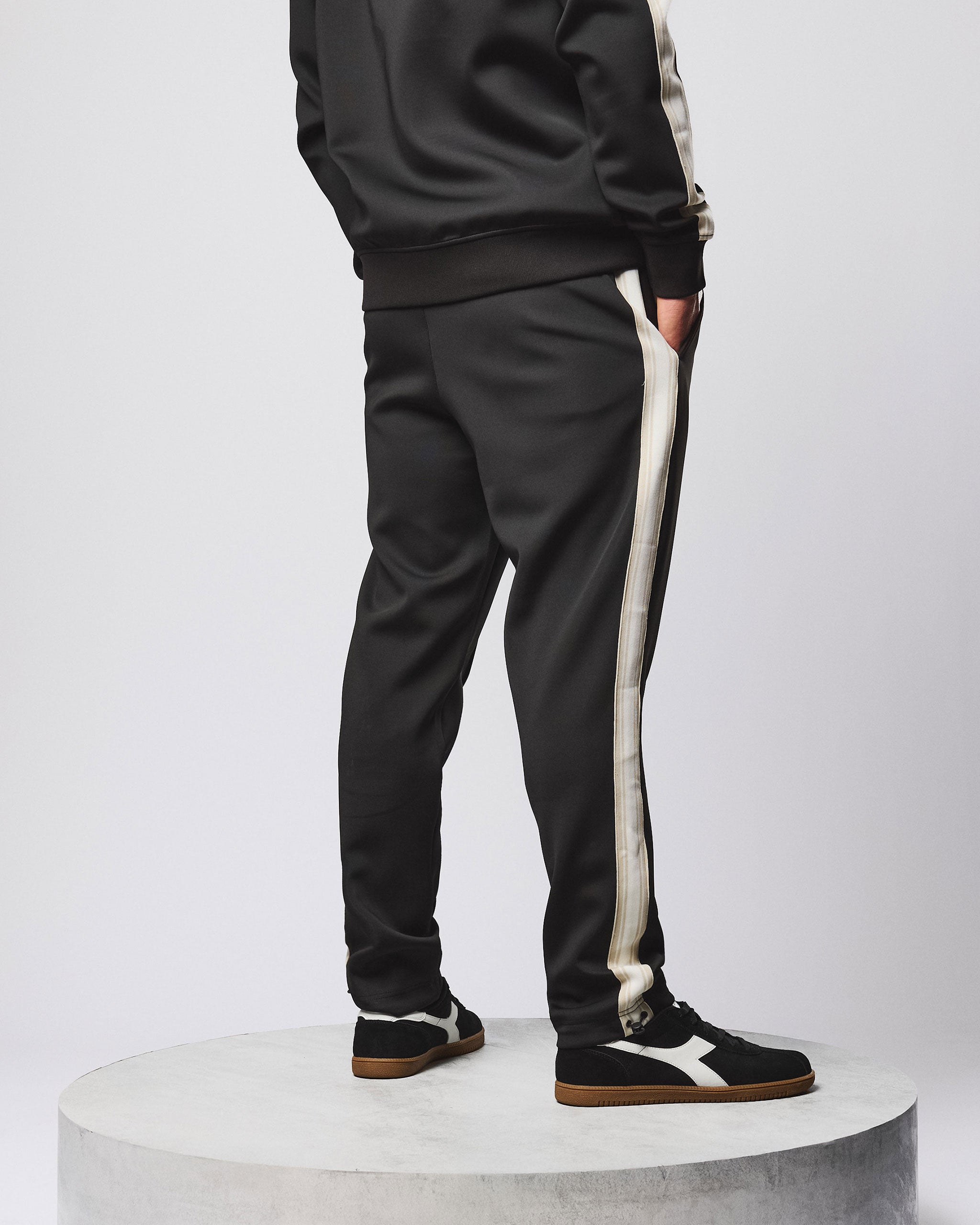 Sheehan Tricot Track Pants are made from 90% polyester 10% elastane warp knitted tricot fabric with 4-way stretch for a relaxed silhouette and classic sporting feeling.