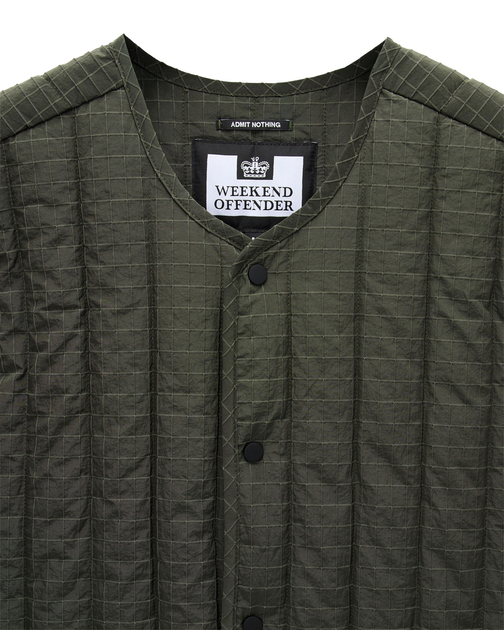 Die Fitzpatrick Weste besteht aus 100 % Nylon-Ripstop mit 3D-geflochtenen Verstärkungsfäden für hohe Zugfestigkeit und strukturiertes Finish. Mit einer zusätzlichen DWR-Beschichtung (Durable Water Repellent) versehen.