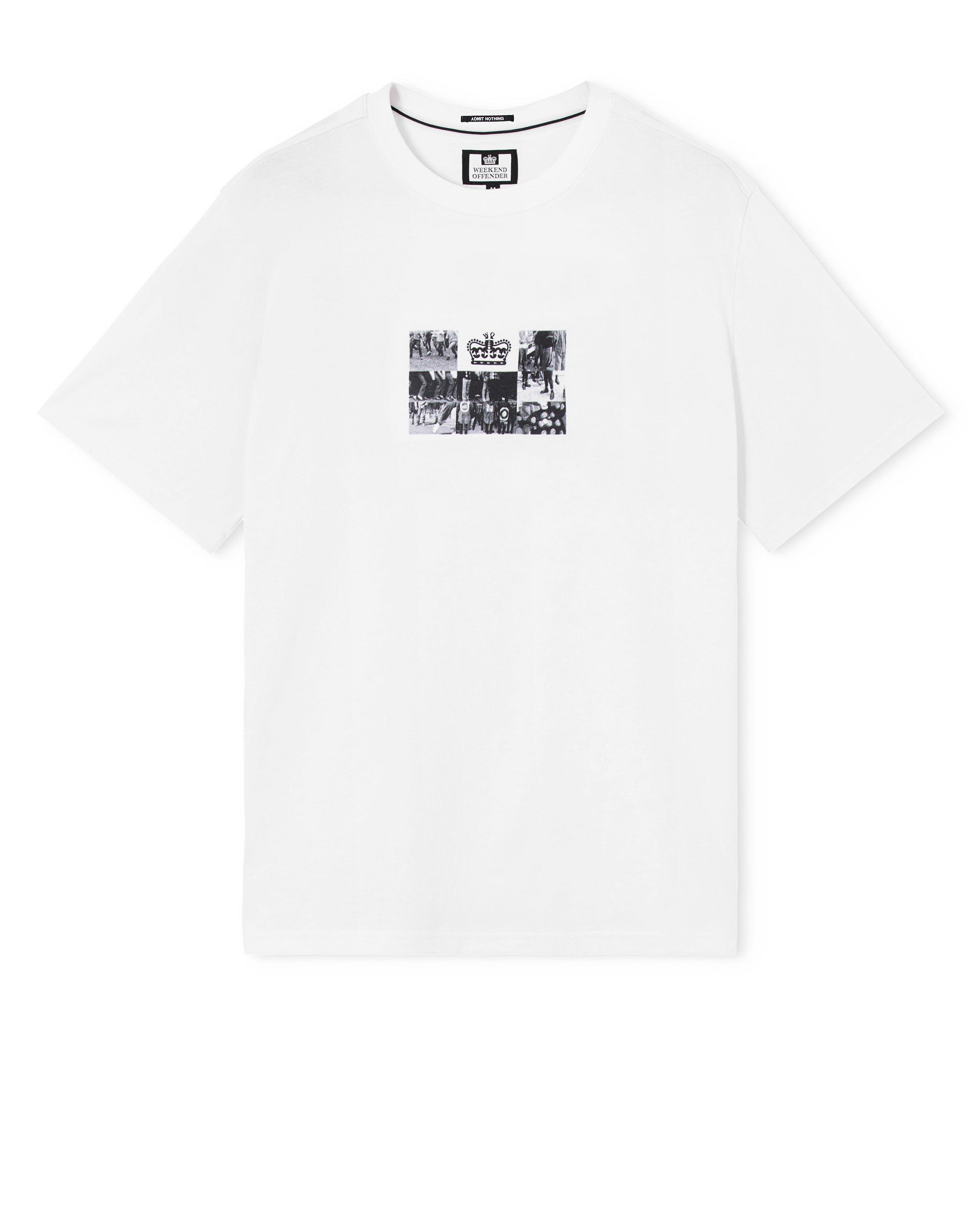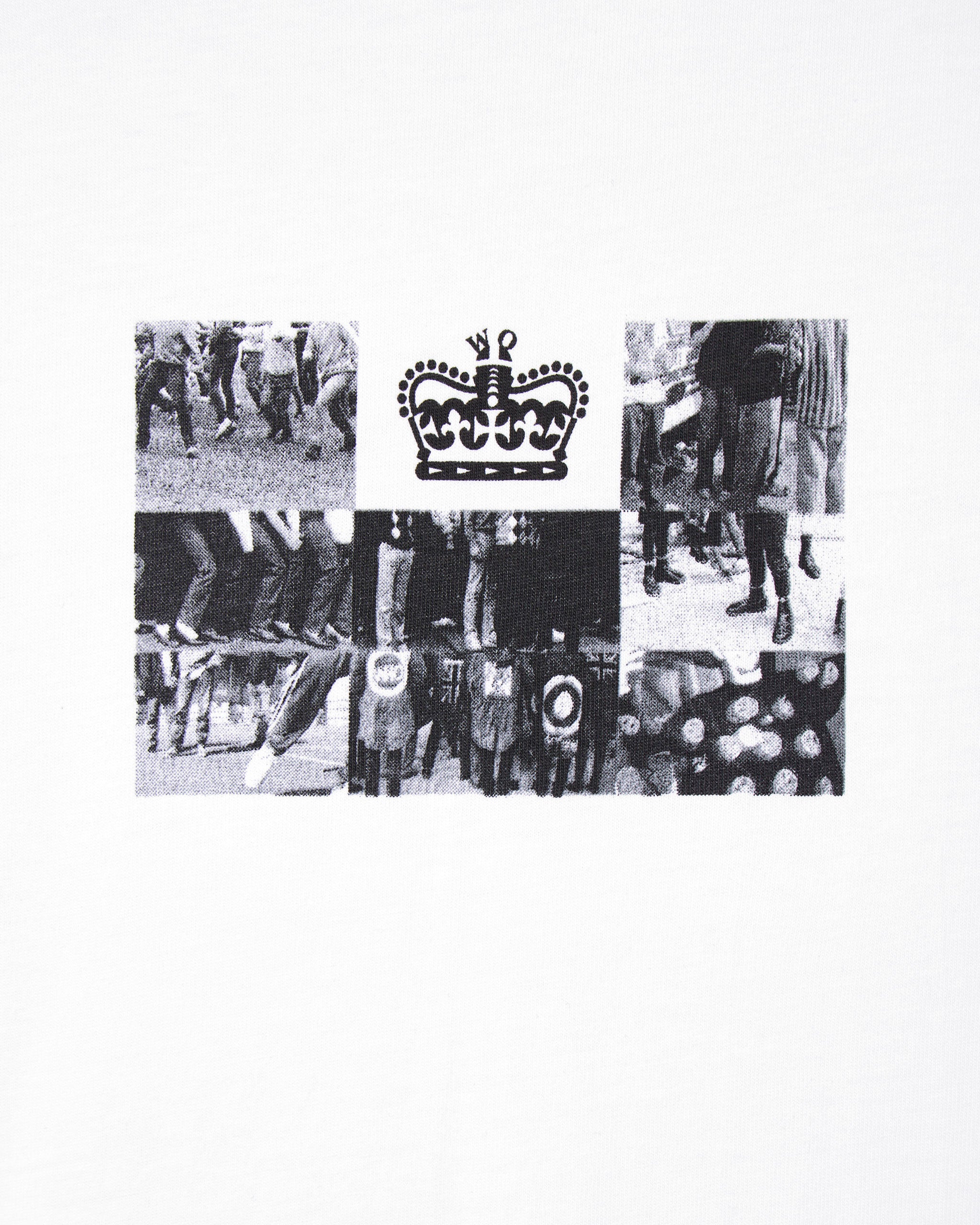 Das Albion Graphic Tee zeigt eine Collage britischer Subkulturen – von lässigen Partygängern bis hin zu Acid-House-Ravern – die zum ikonischen Weekend Offender-Logo verschmolzen sind. Der Rückendruck im Manifest-Stil fängt Chaos, Gewalt, Musik und Seele der Jugendkultur über die Jahrzehnte hinweg ein.