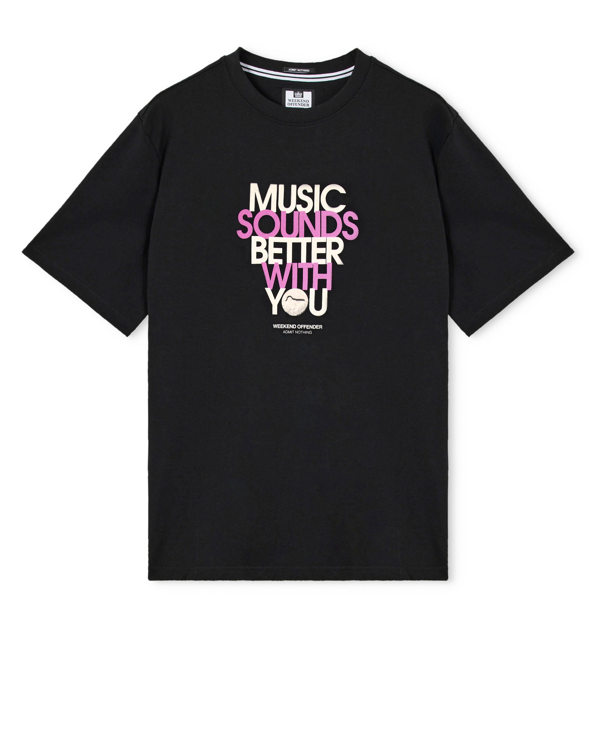 Eine kühne typografische Hommage an einen klassischen Liedtext, verbunden mit einer subtilen Anspielung auf die Rave-Kultur durch die mit einer Taube geprägte Pille.
