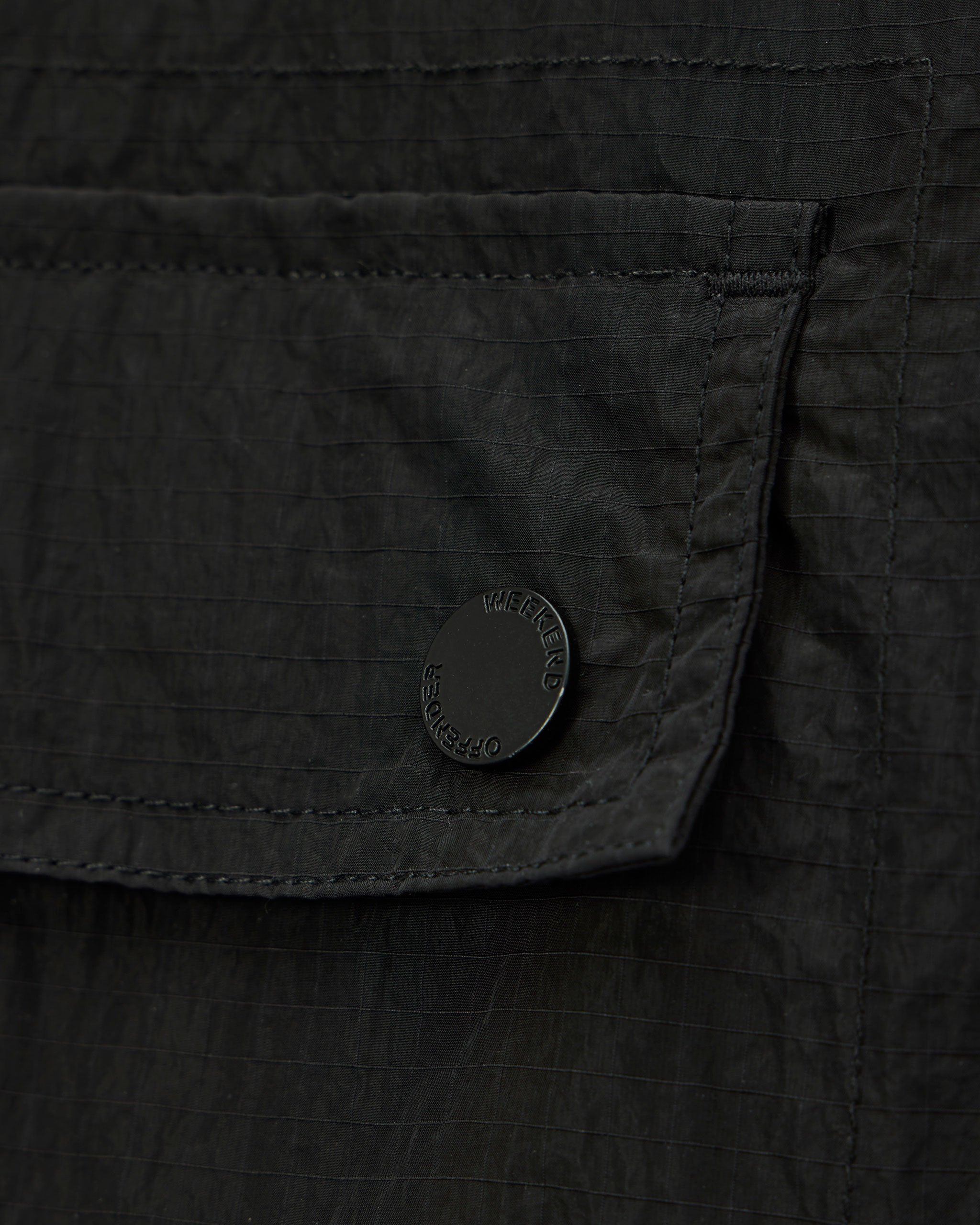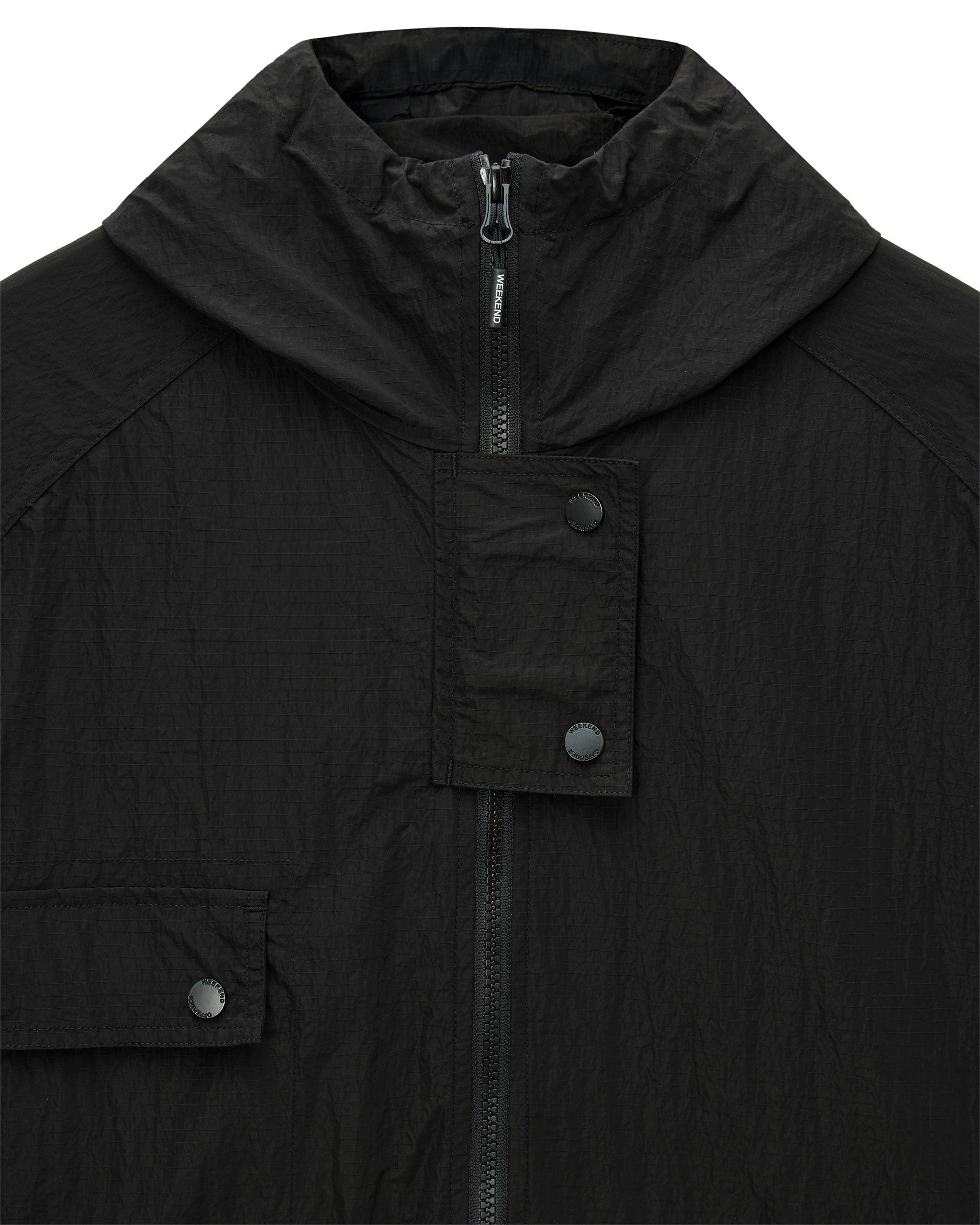 The Zeralda Jacket is made from 100% Nylon tonal ripstop custom woven with ultra fine black weft yarn and a saturated warp yarn for a rich depth of colour and resistance to tearing.