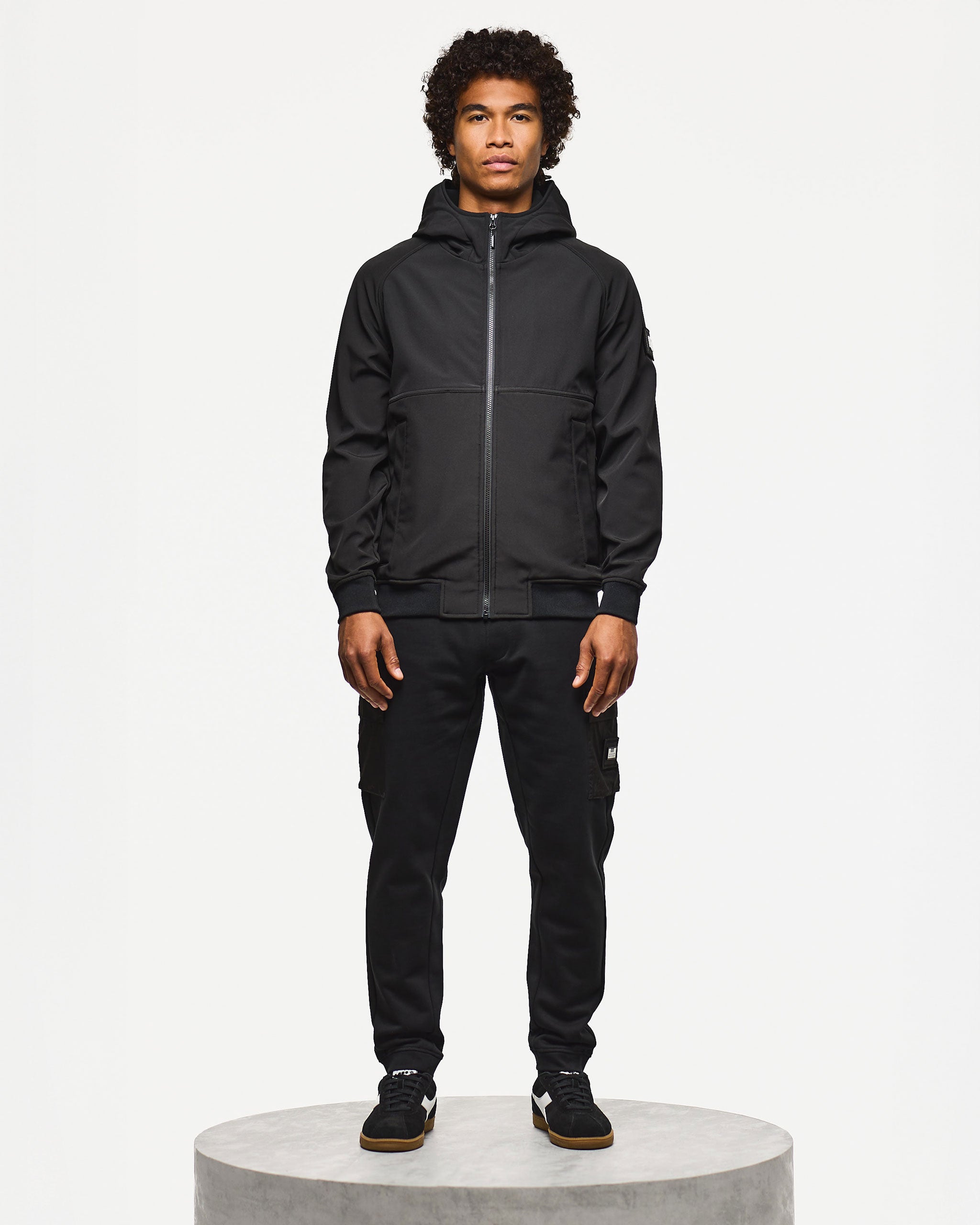▪ Kapuze mit Einsätzen, Schirm und verstellbarem Kordelzug auf der Rückseite der Kapuze