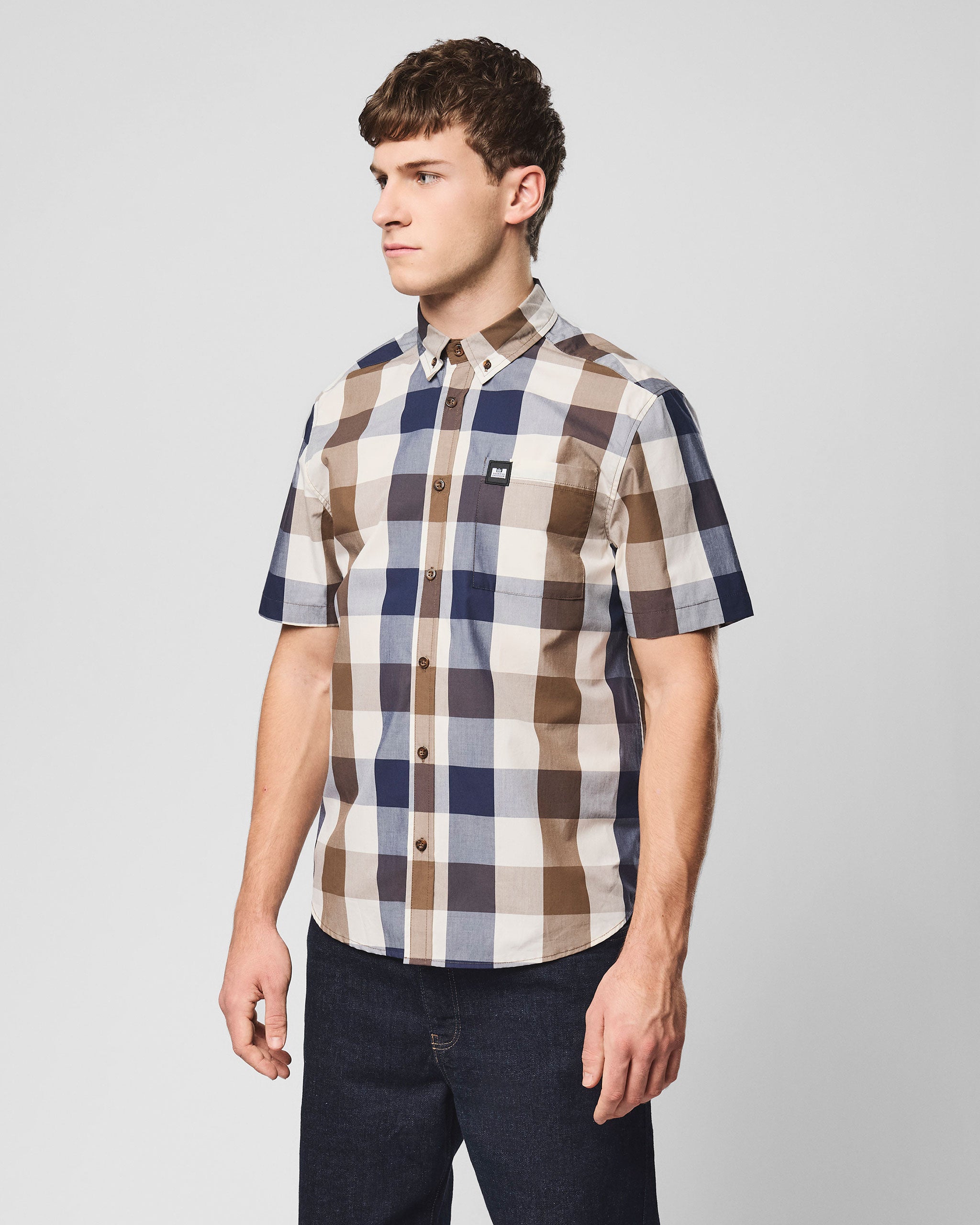 The Joyce short sleeved shirt features our iconic signature 3 colour 100% Cotton poplin fine weave house check with a smart crisp finish.
