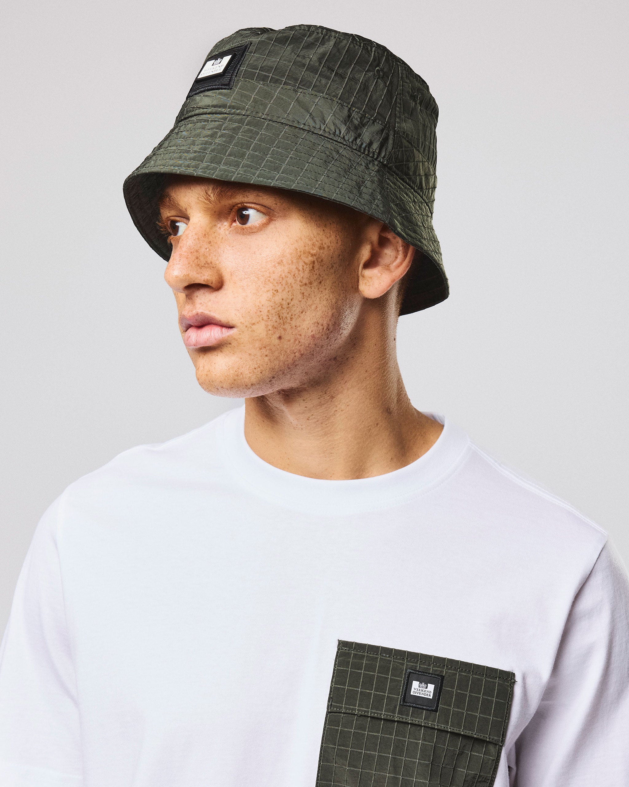 The Boukhari bucket hat is made from custom WO 100% Nylon large ripstop with 3D braided reinforcement threads for high tensile strength and textured finish.