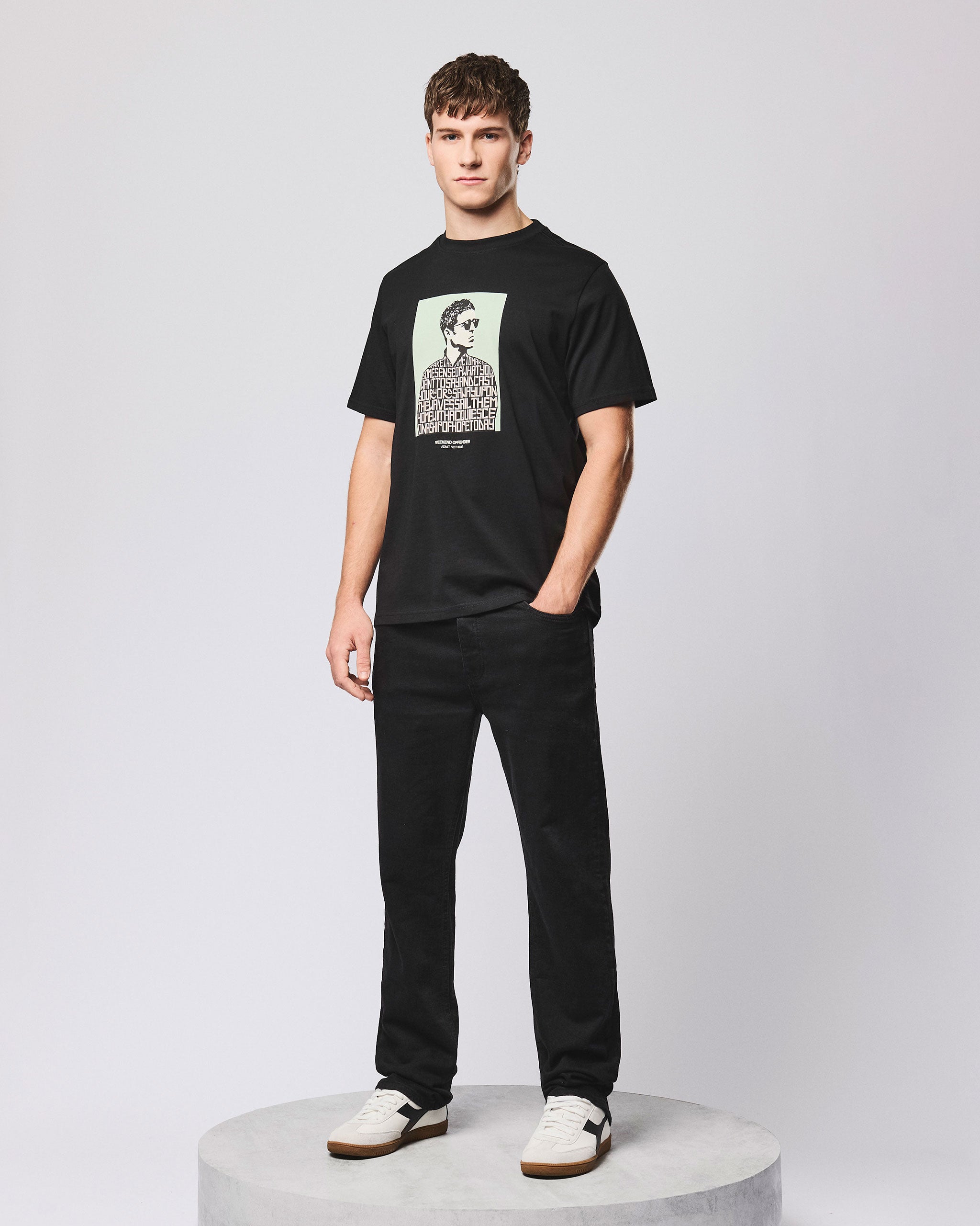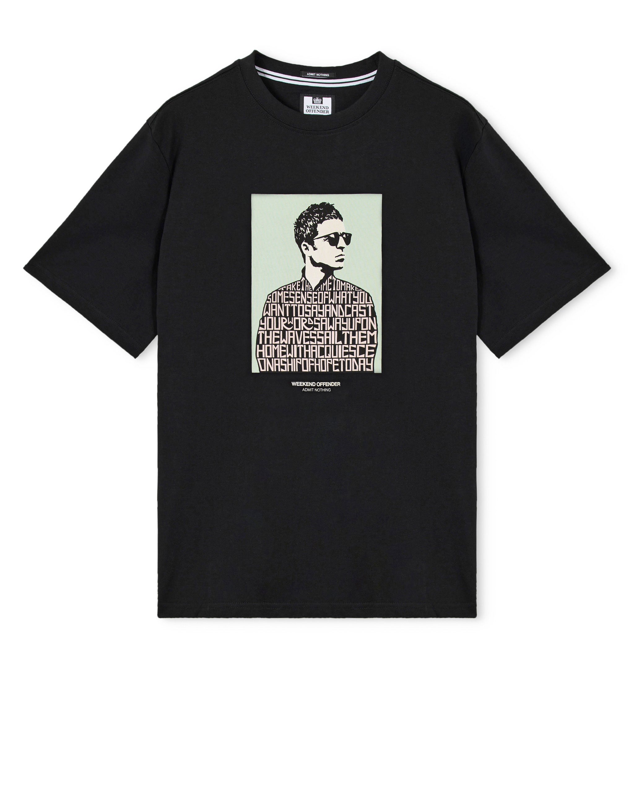 A graphic homage to one of British music’s most iconic voices. The silhouette is built entirely from lyrics that defined a generation.