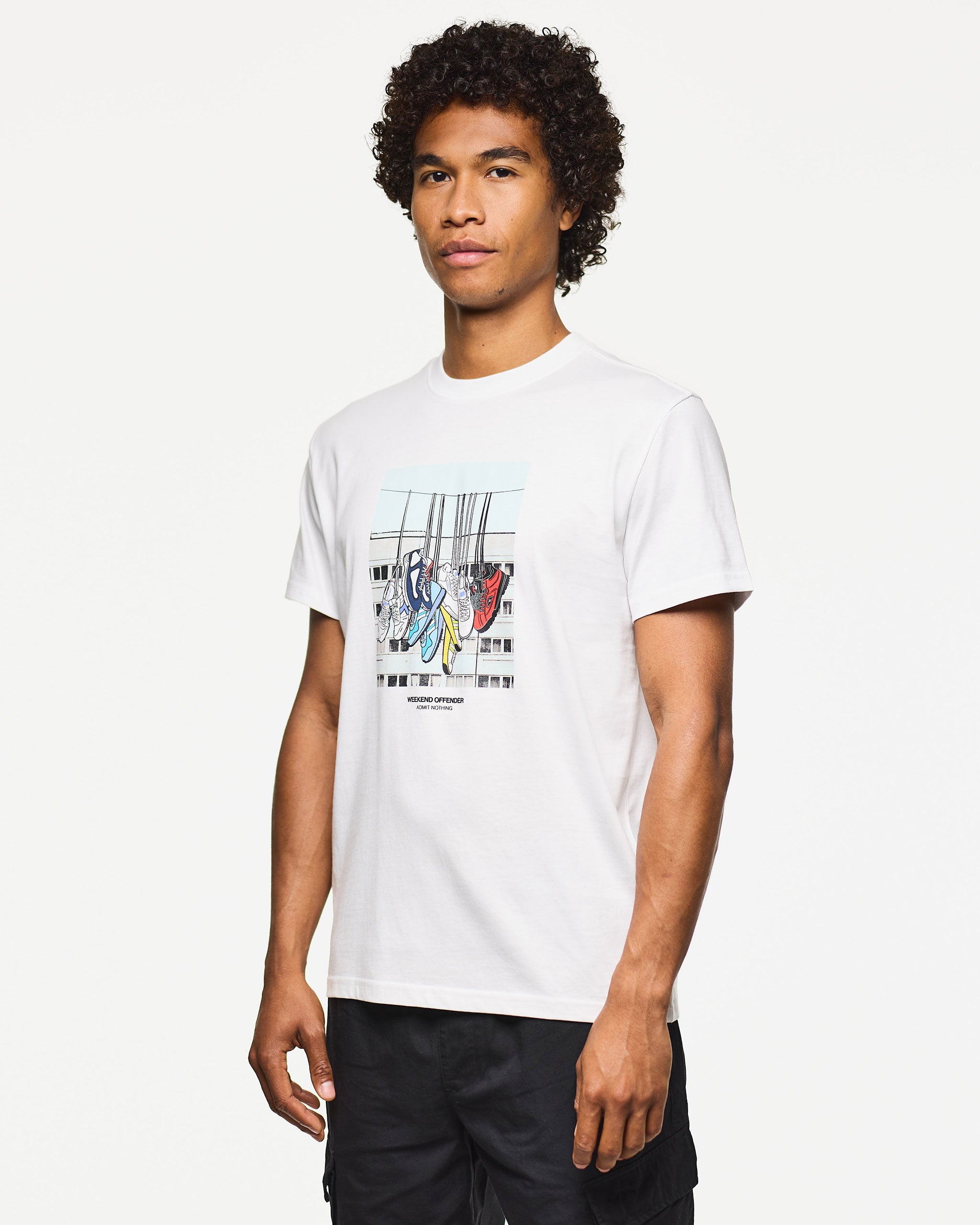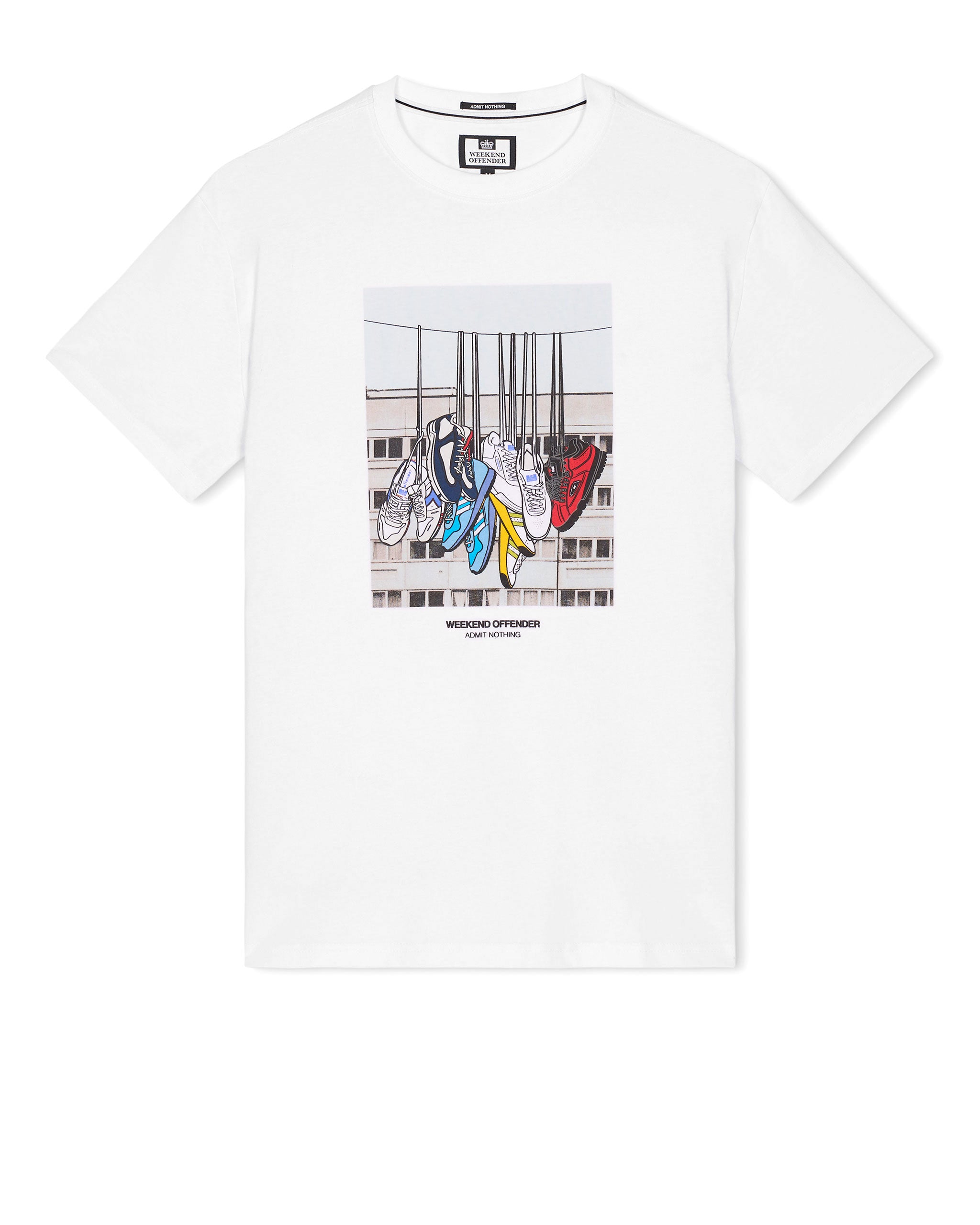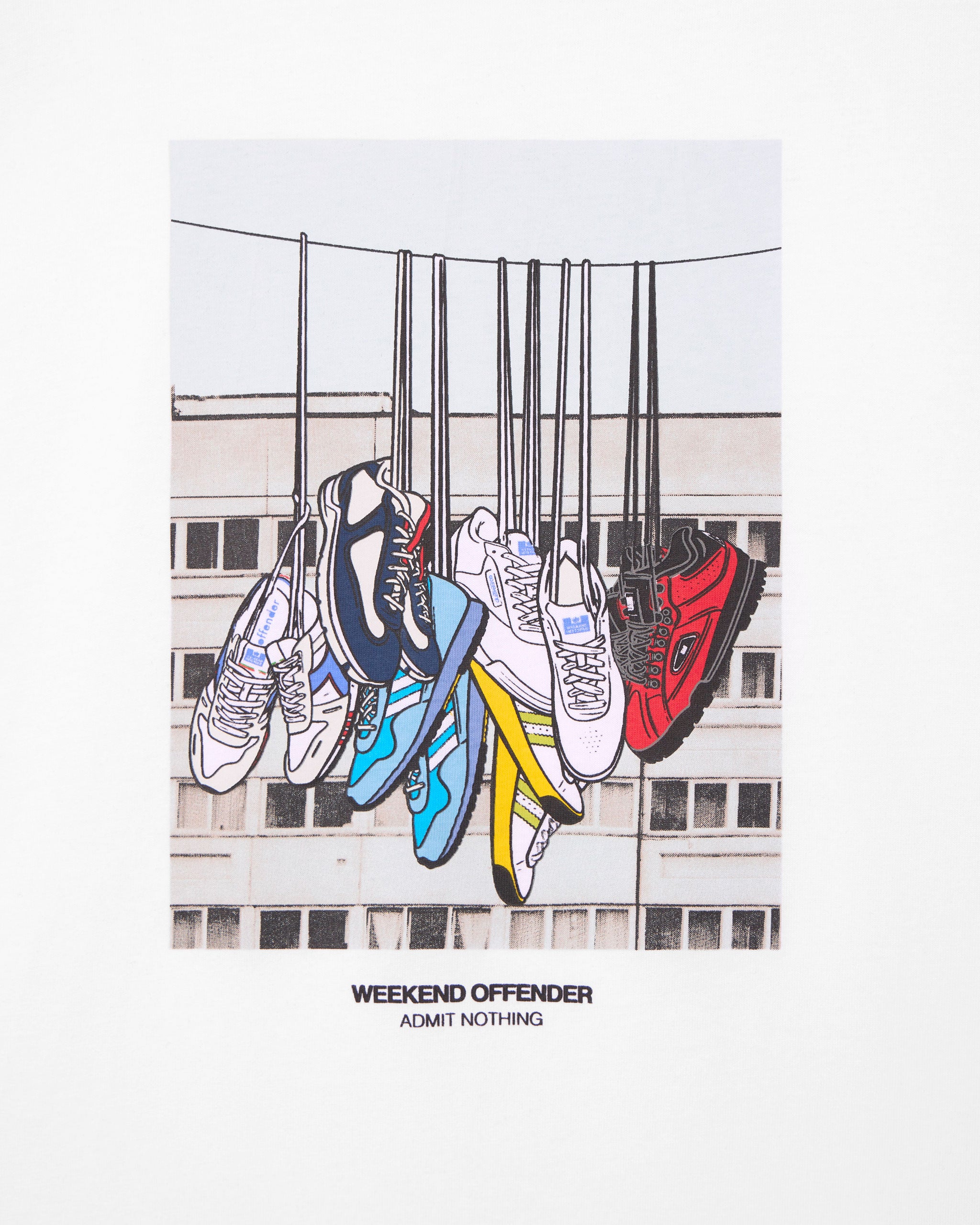 The Battle Lines Graphic displays a collection of iconic trainers dangling from telephone wires set against the backdrop of a UK council estate.