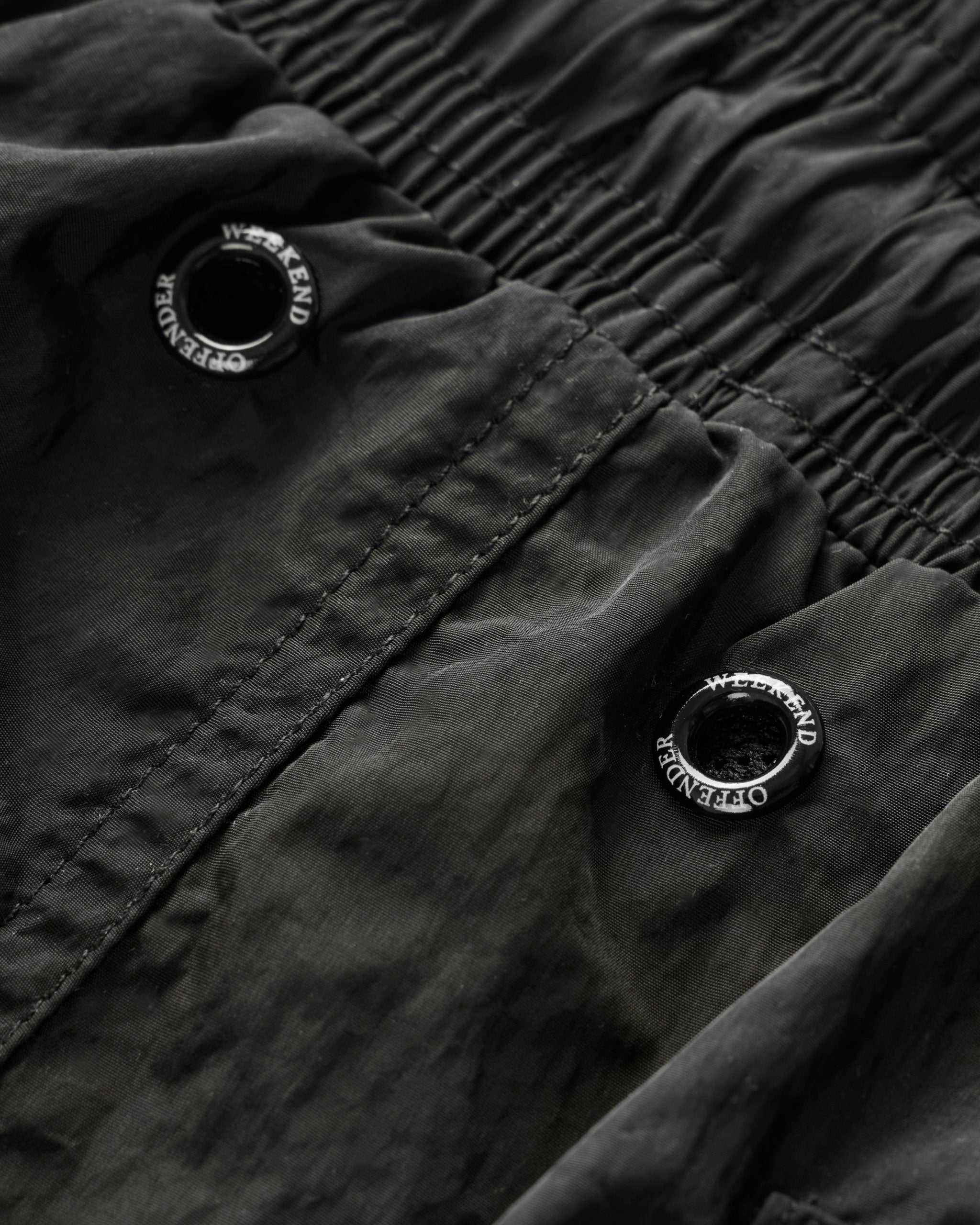 The Kids Stacks Swim Shorts are made from lightweight high density woven 100% Nylon parachute style fabric with misted lightly reflective surface.