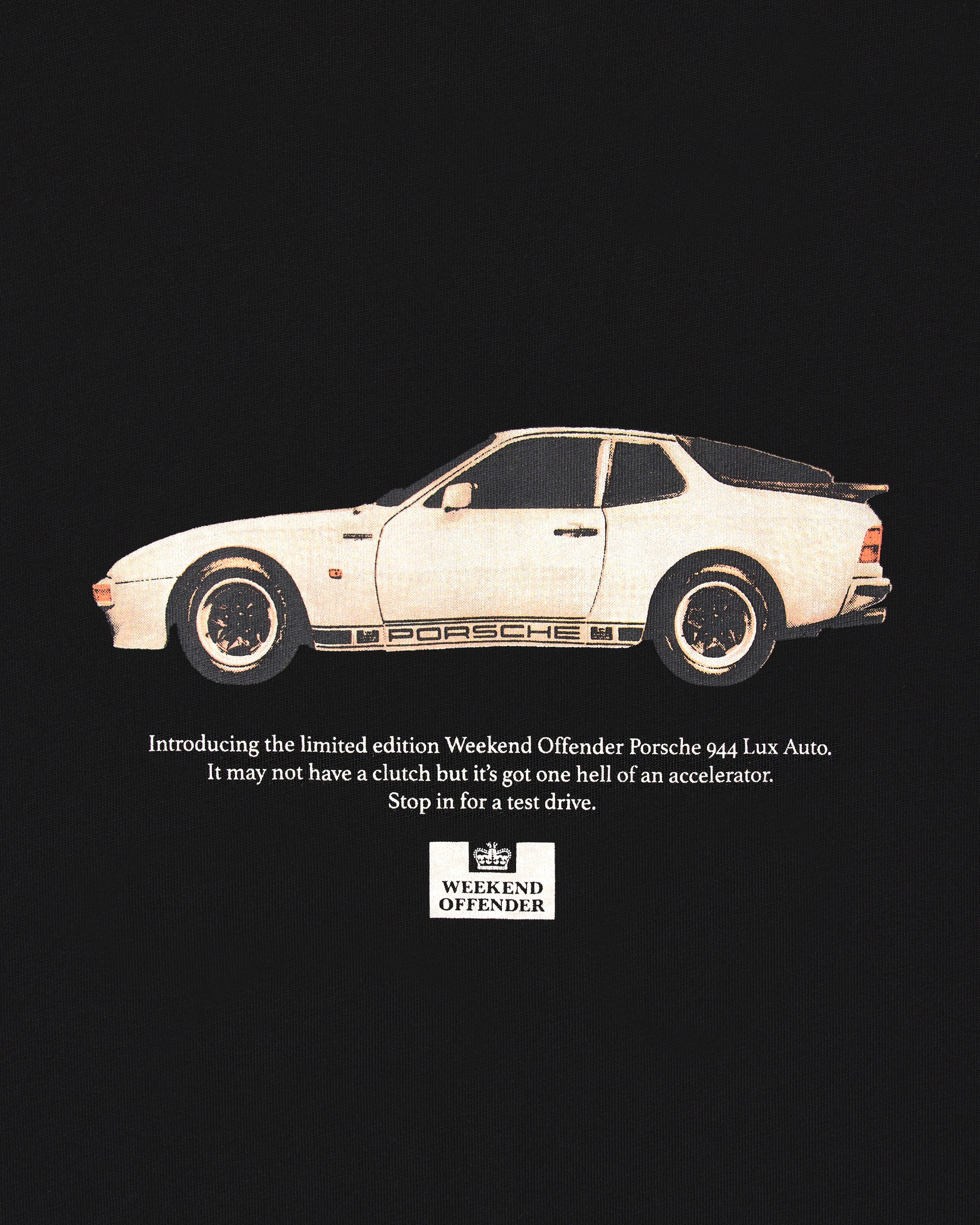 The 944 Graphic tee introduces the limited edition Weekend Offender Porsche 944 Lux Auto. It may not have a clutch but it’s got one hell of an accelerator. Stop in for a test drive.