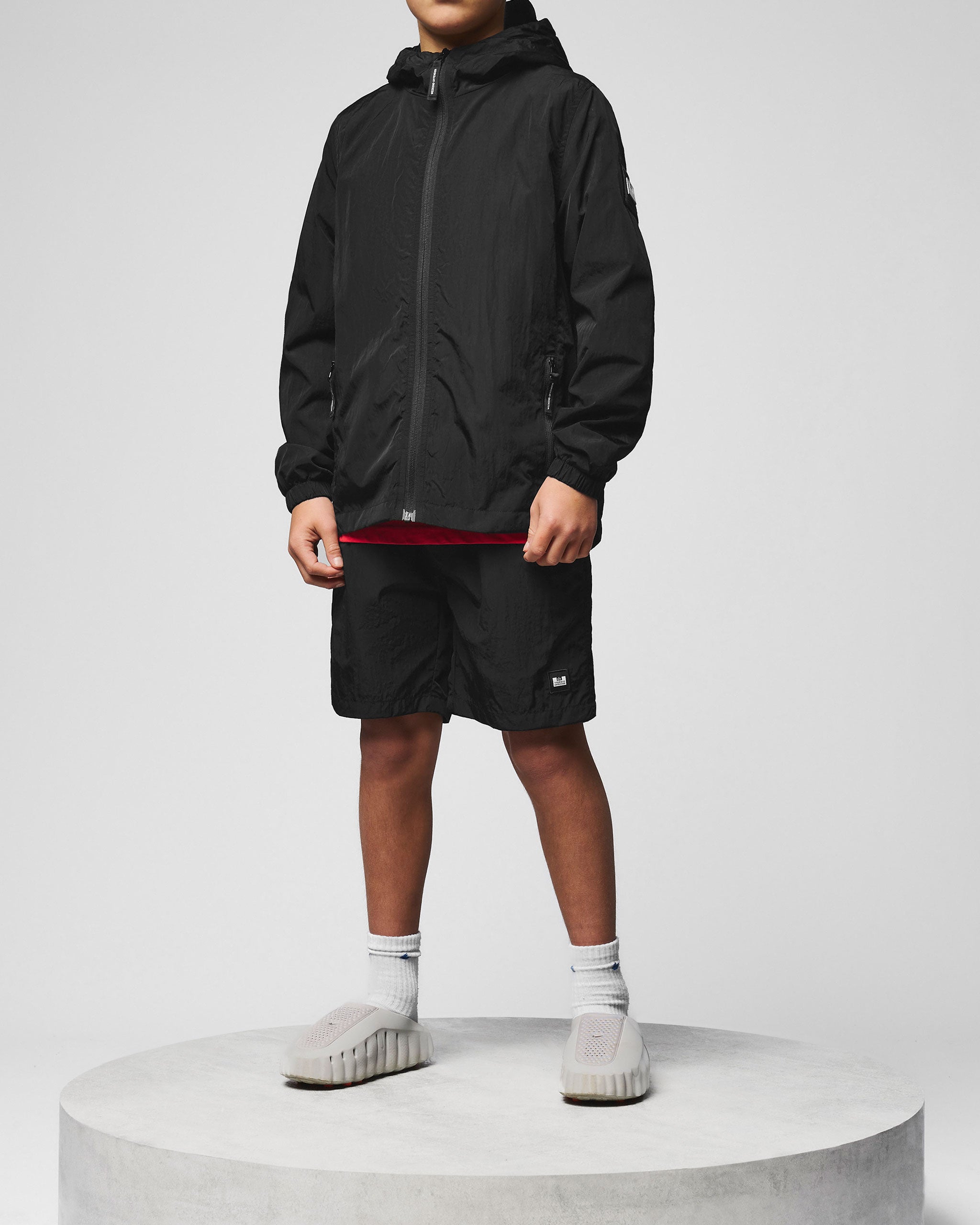 The Kids Stacks Swim Shorts are made from lightweight high density woven 100% Nylon parachute style fabric with misted lightly reflective surface.