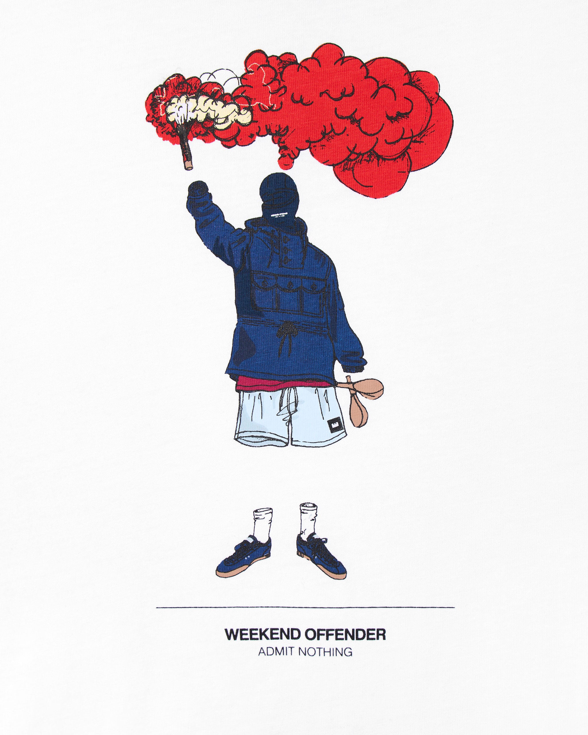 The Chabet Graphic Tee features a faceless figure in full Weekend Offender attire, flare in hand, smoke billowing, tension rising. A tribute to the drama, defiance, and spectacle of match-day culture.
