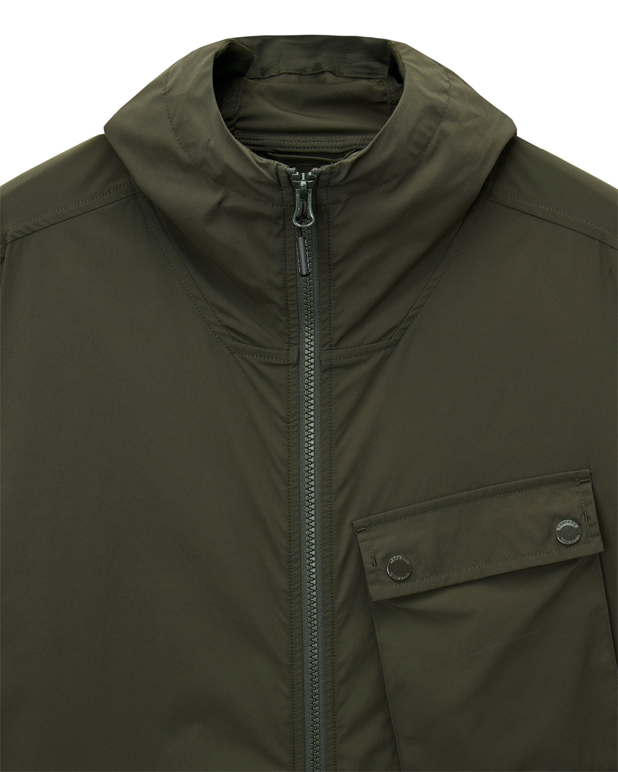 ▪ Angled chest pocket with WO branded press studs to flap