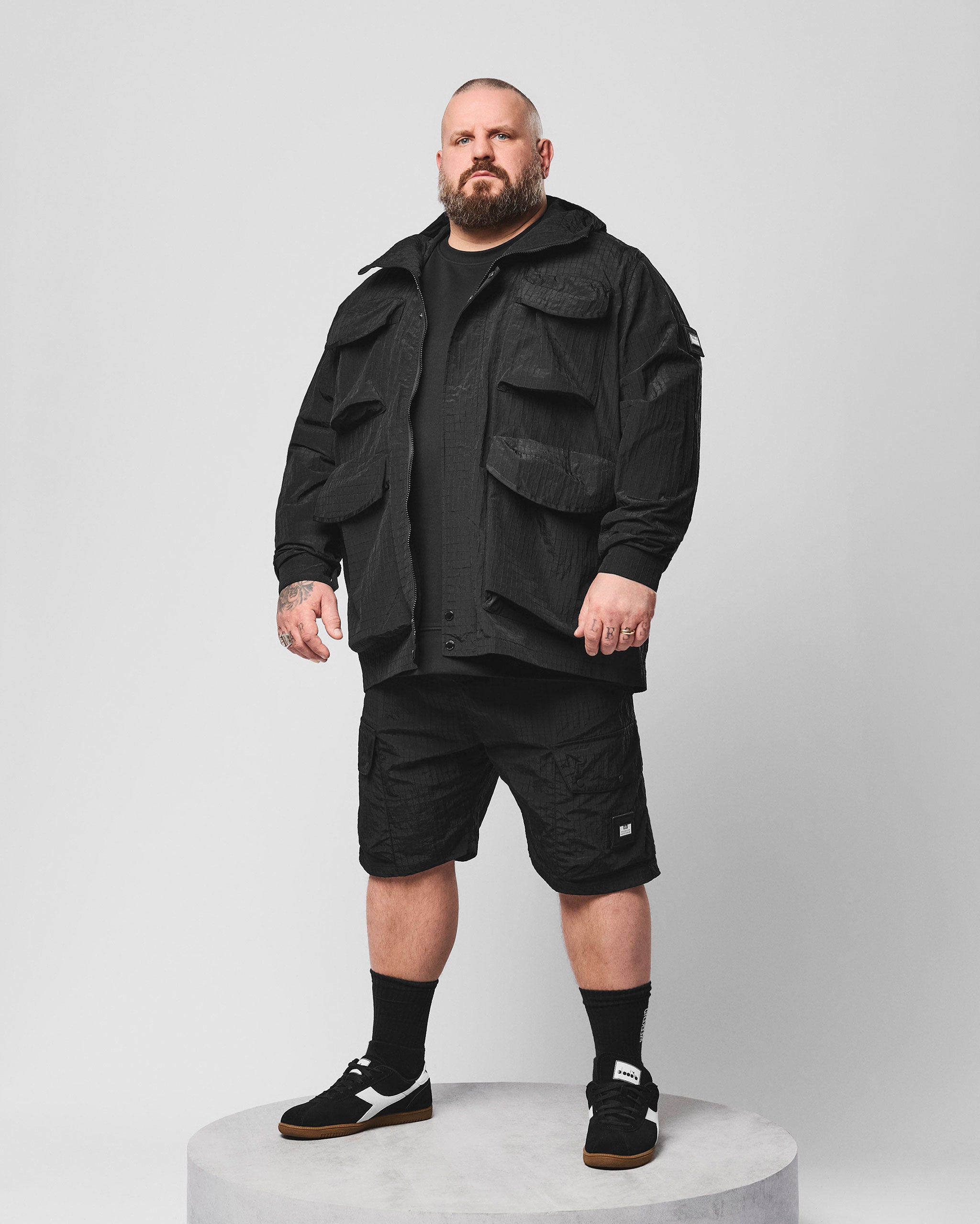 La giacca Cotoca è realizzata in WO 100% Nylon ripstop di grandi dimensioni personalizzato con fili di rinforzo intrecciati in 3D per un'elevata resistenza alla trazione e una finitura testurizzata.