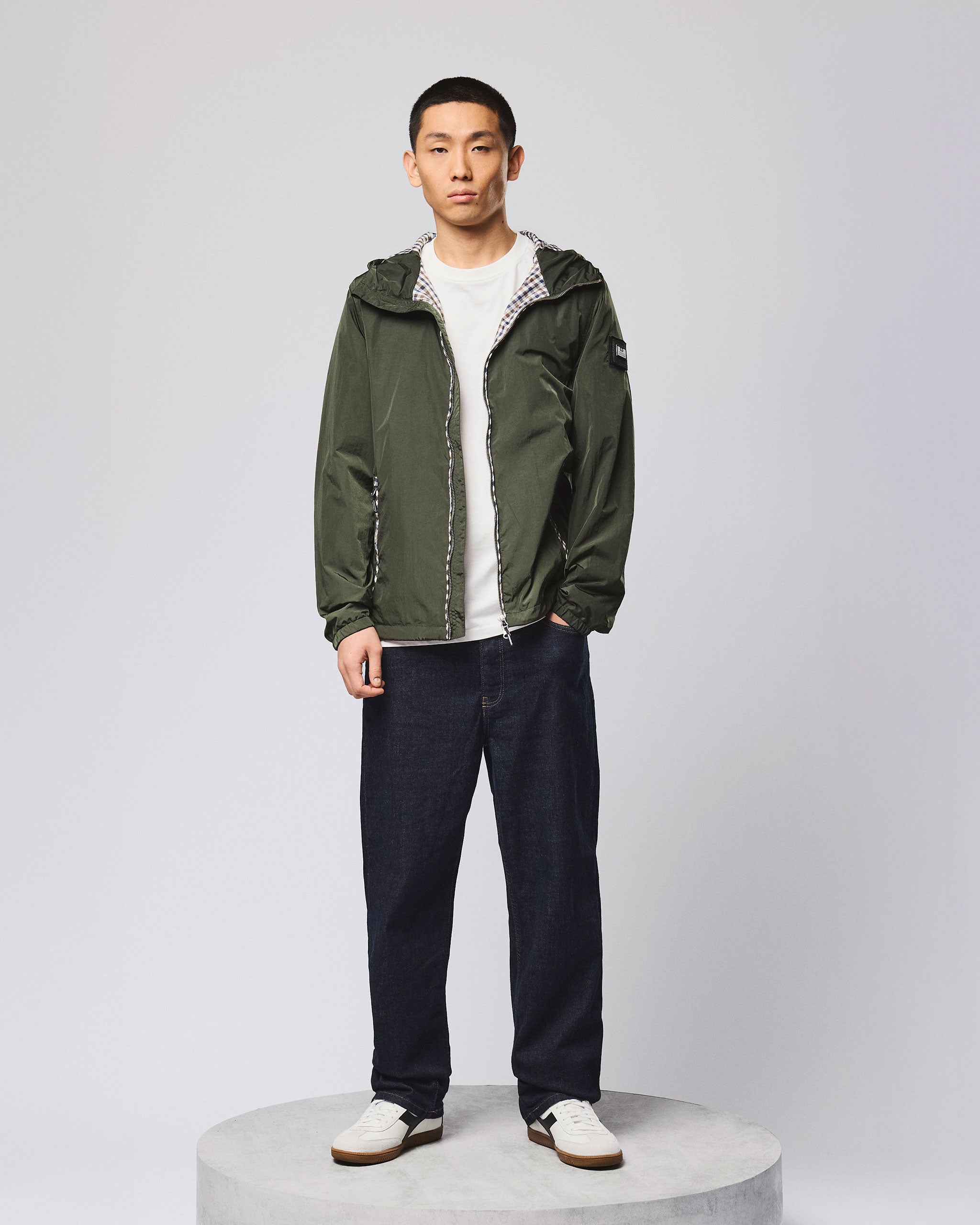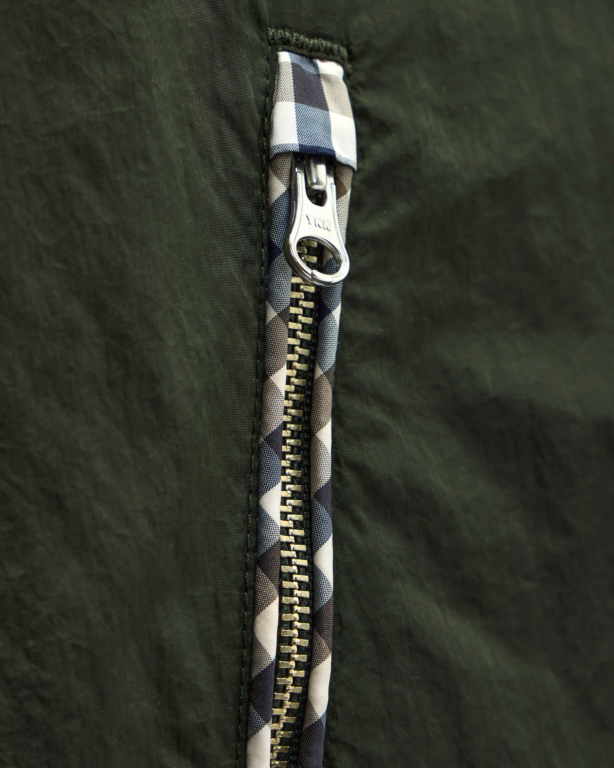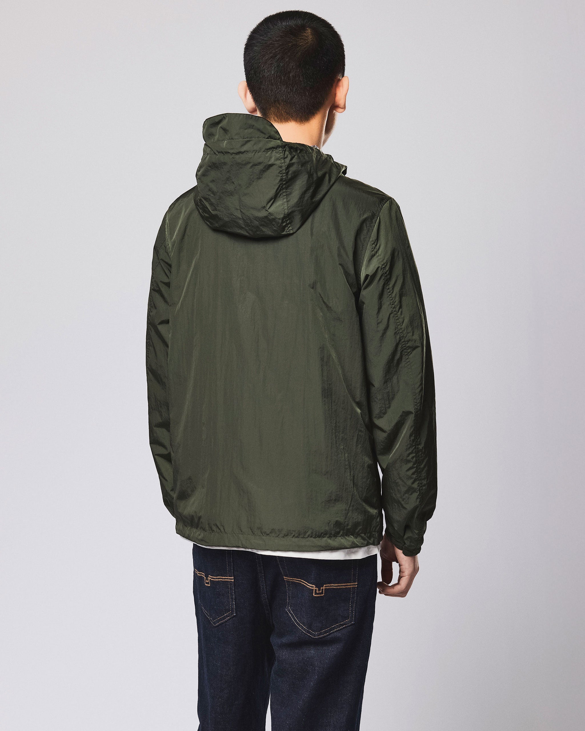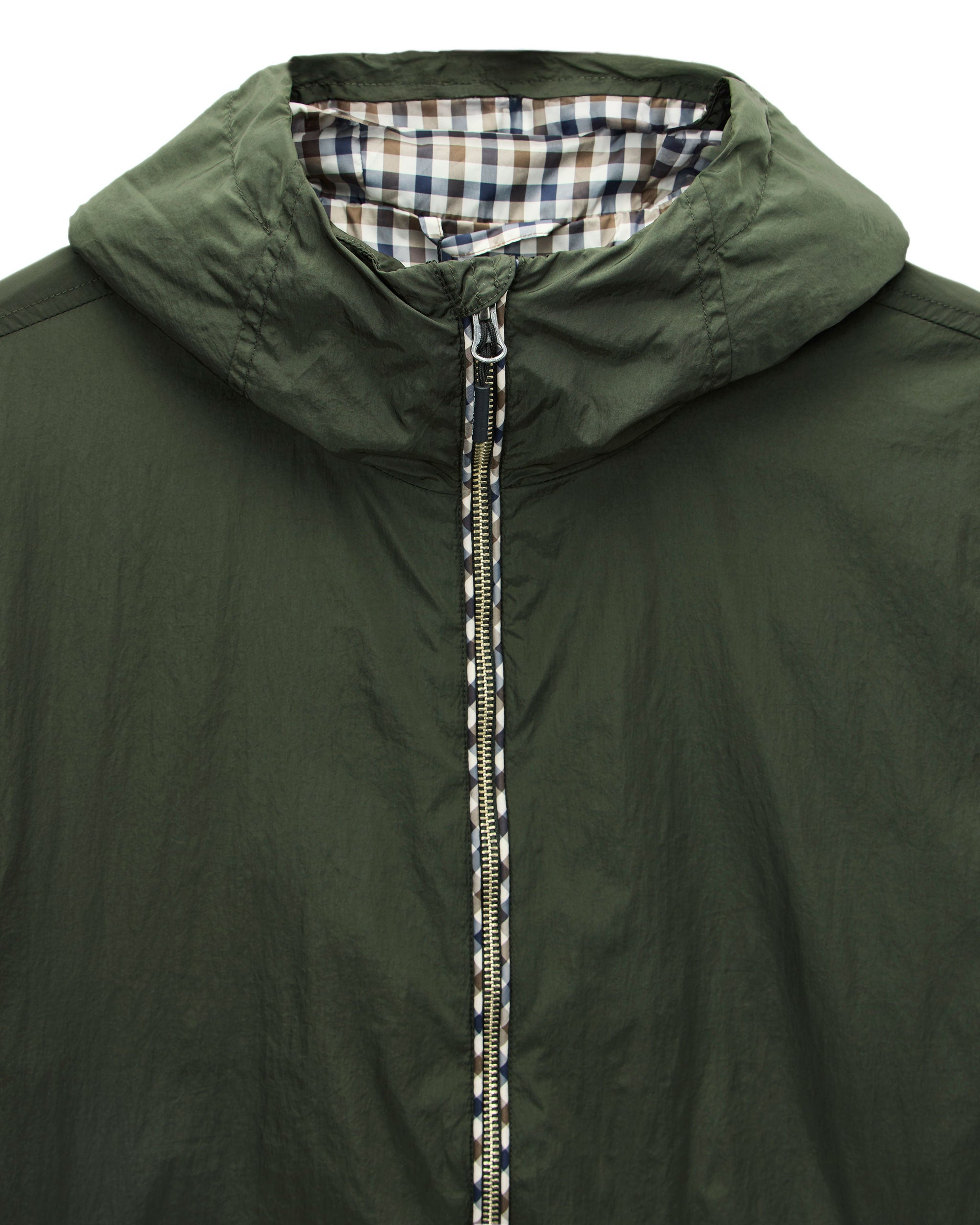 La giacca Campania è realizzata in tessuto leggero ad alta densità in nylon al 100%, stile paracadute, con superficie leggermente riflettente.