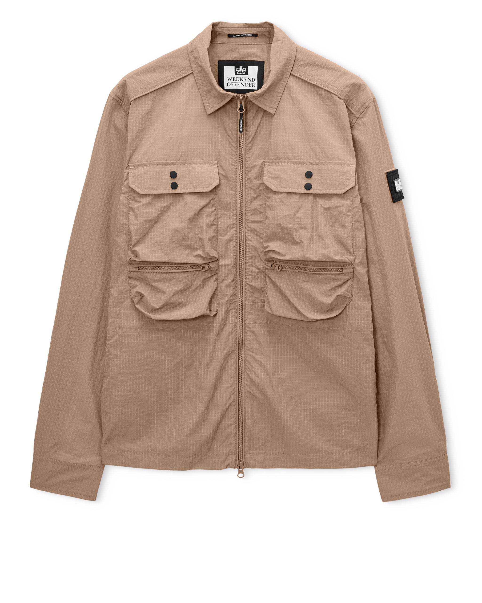 La camicia Shields Over-Shirt è realizzata in 100% nylon ripstop tonale, tessuto su misura con un filato di trama nero ultra sottile e un filato di ordito saturo per una ricca profondità di colore e resistenza allo strappo.