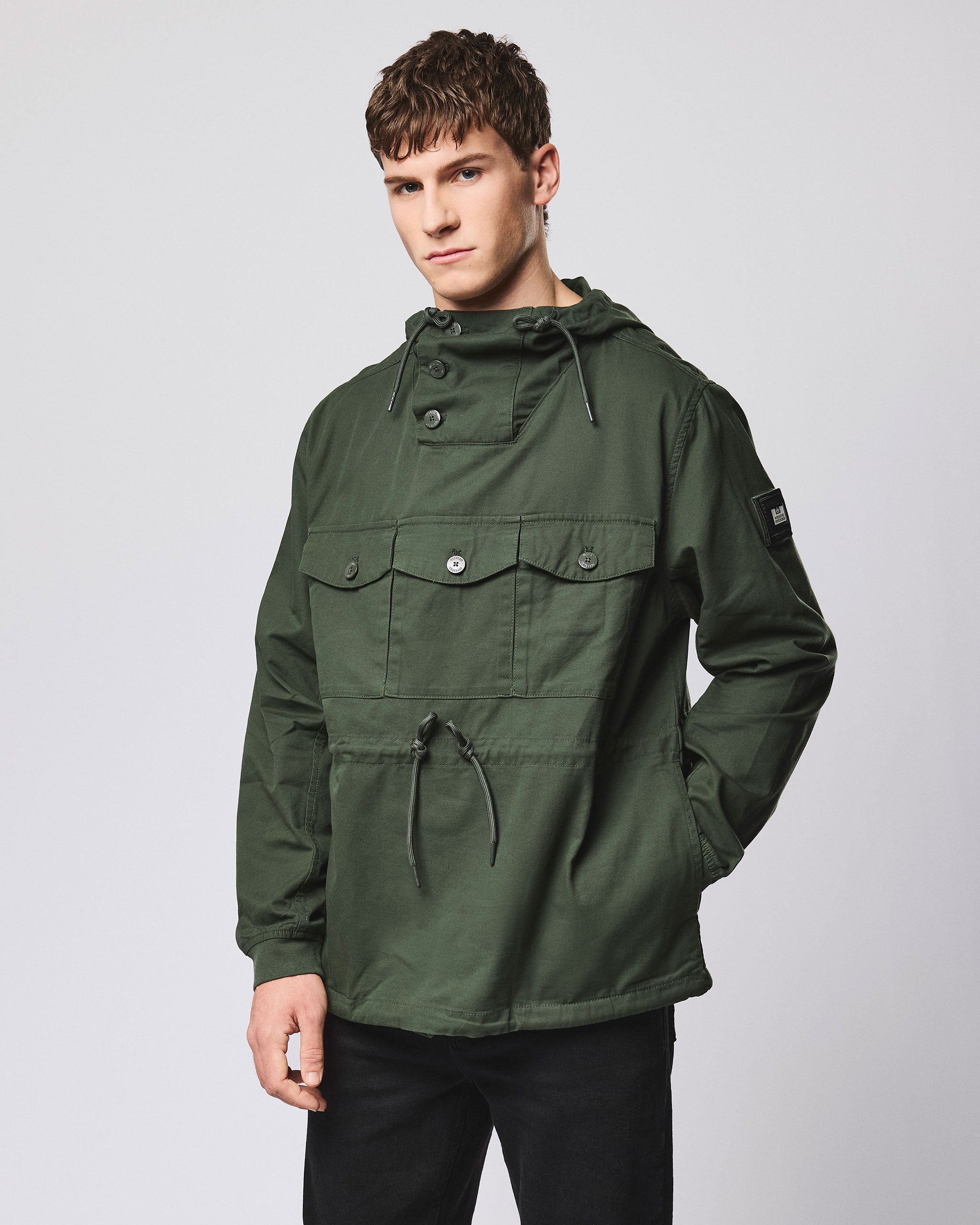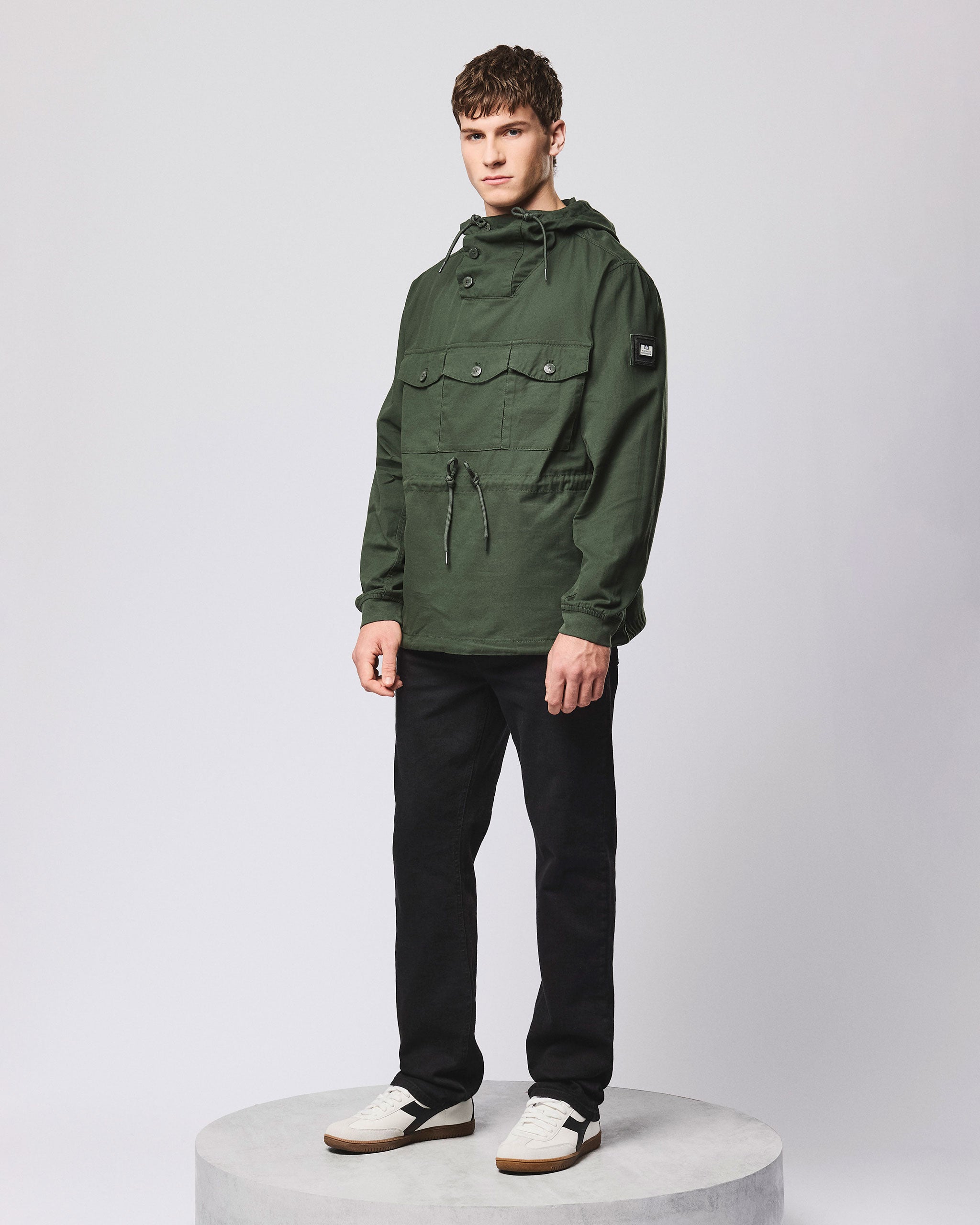 ▪ Tre tasche a soffietto sul petto con bottoni con marchio WO