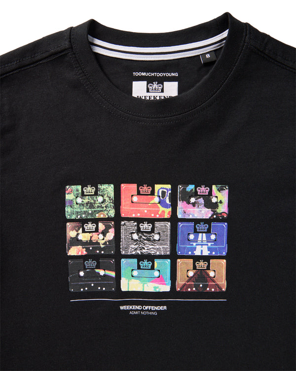 Hanover Graphic Tee showcasing mini prison cassettes featuring some of our favourite album covers.